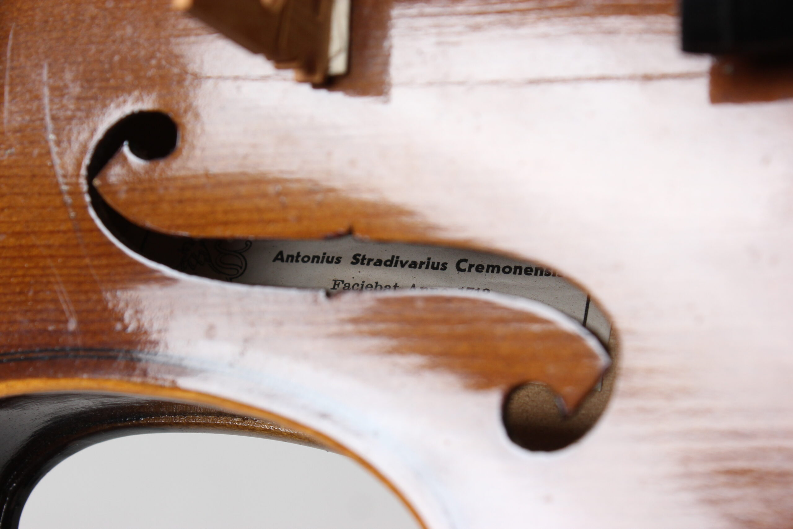 Soittajalle tai sisustukseen vanha Stradivarius cremonensis viulu. Mukana viulu, jousi, erinäisiä tarvikkeita ja säilytyslaukku.