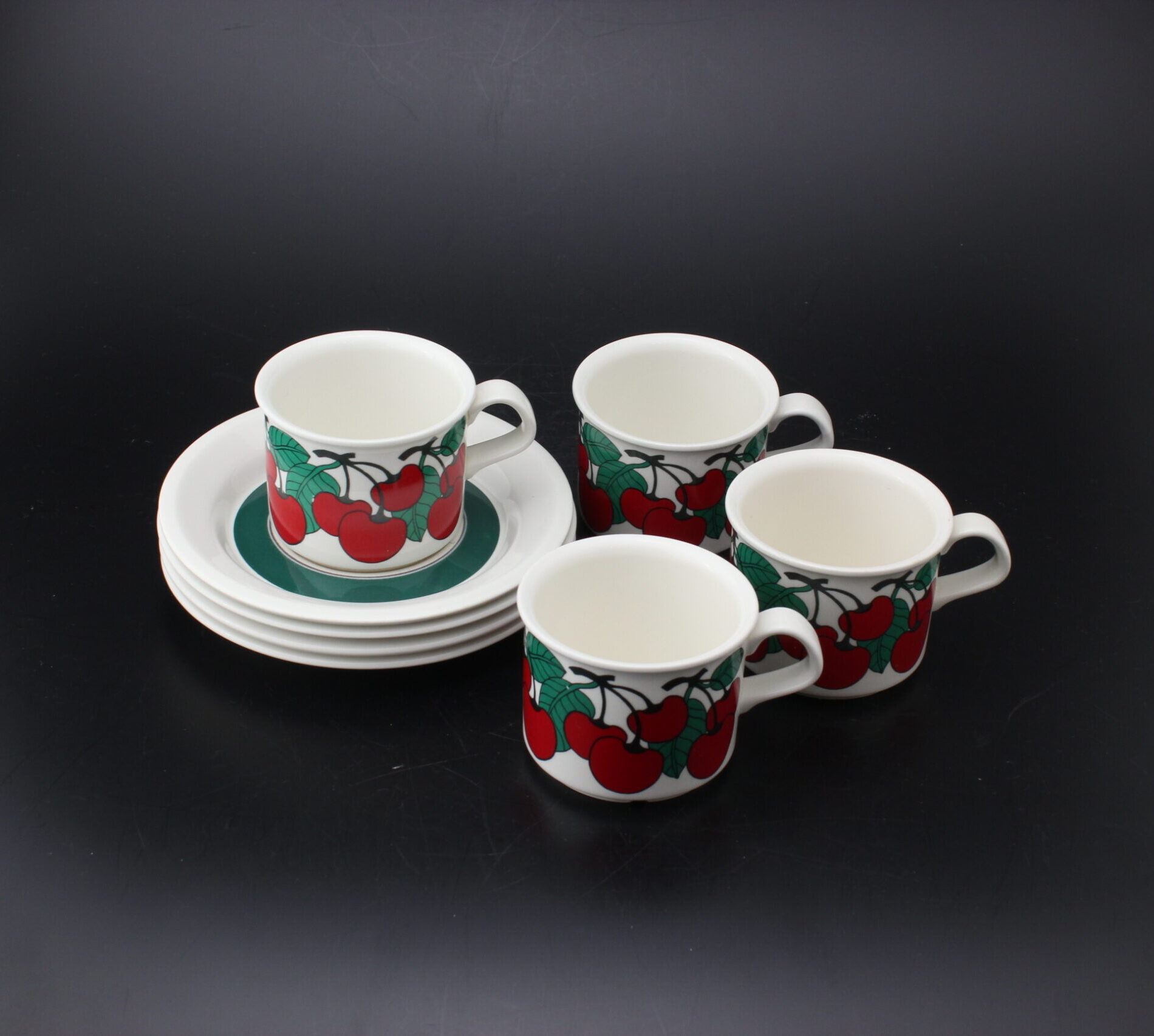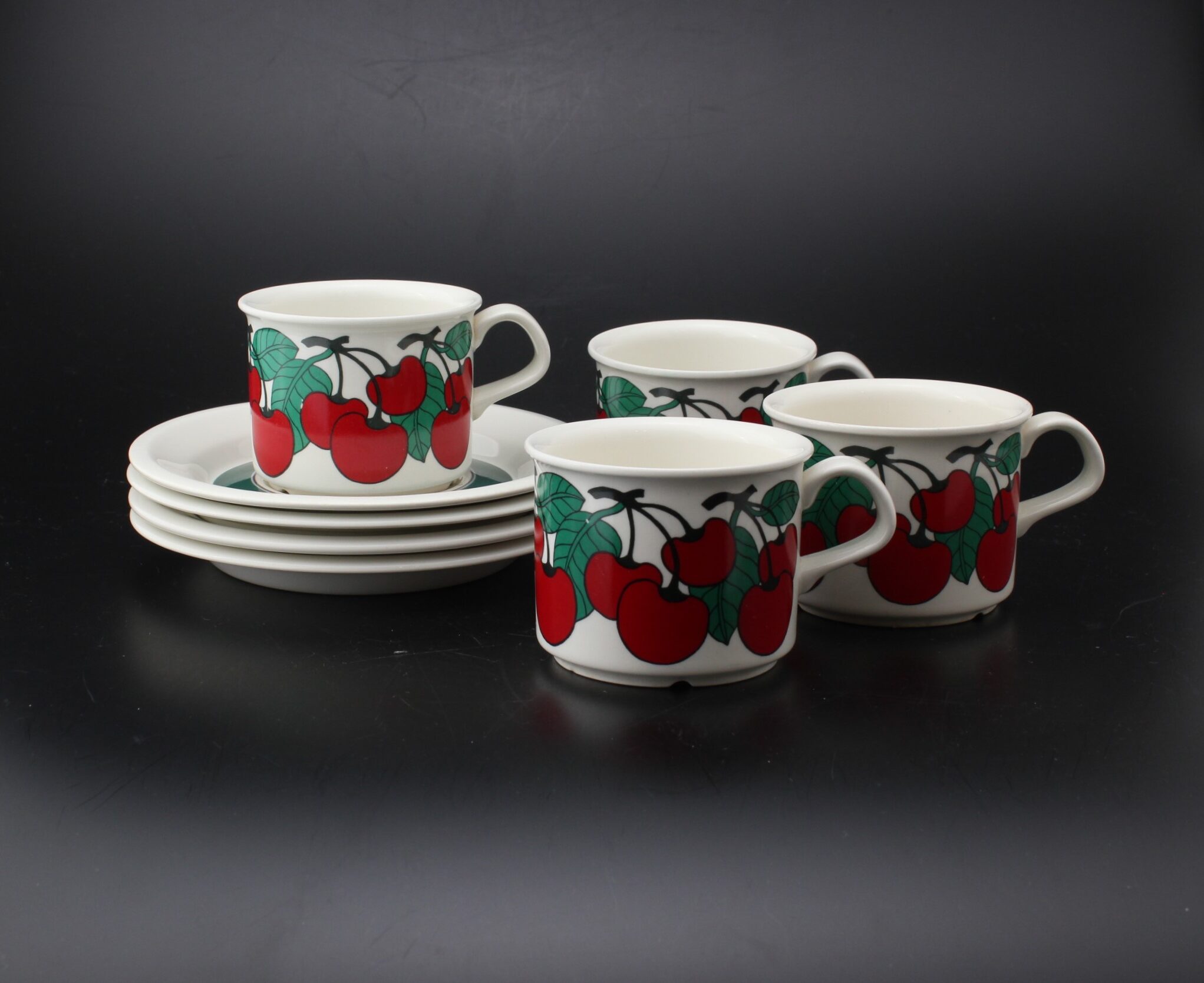 Kunto: ehjät, hieman käytön jälkiä, kupeissa pohjassa kulumaa ja värjäymää
