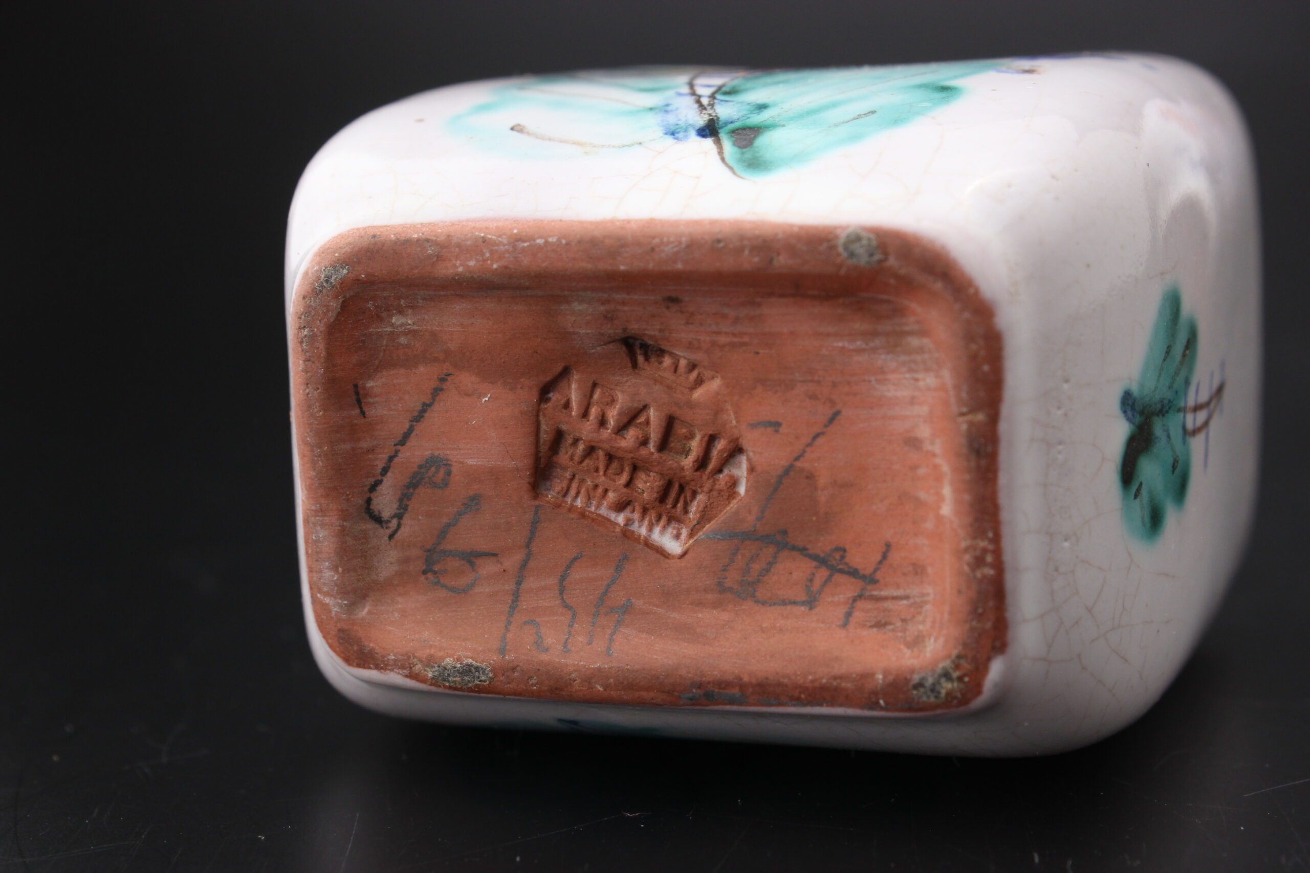 Kunto: ehjät, käytön jälkiä, lasitteessa valmistus virheitä, krakeloitumaa, likaa