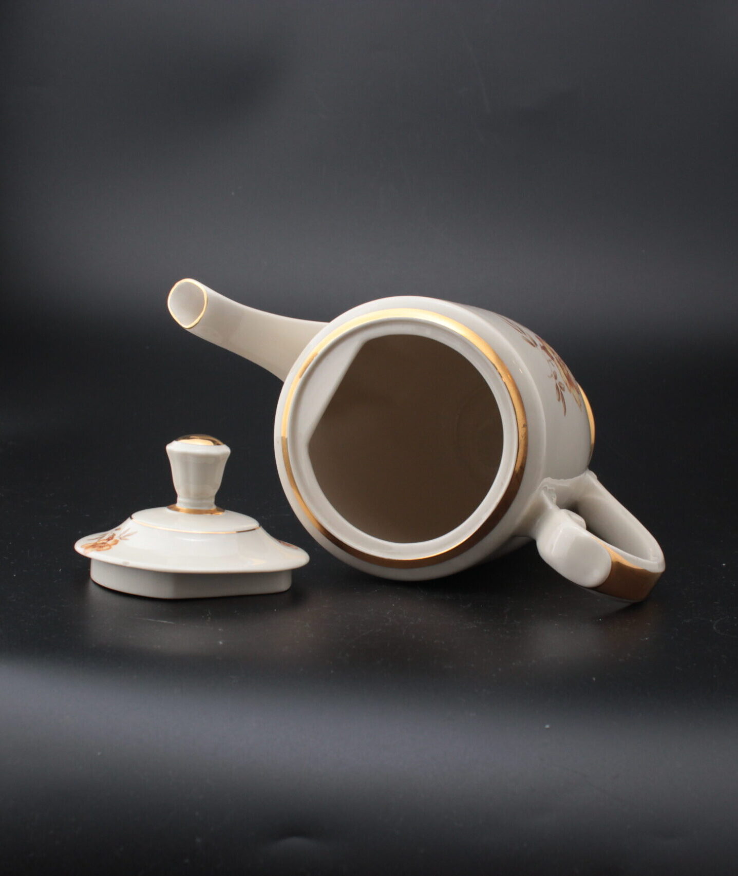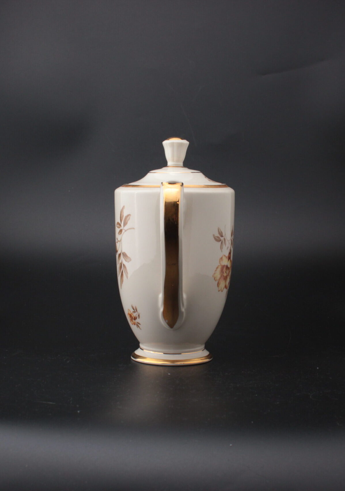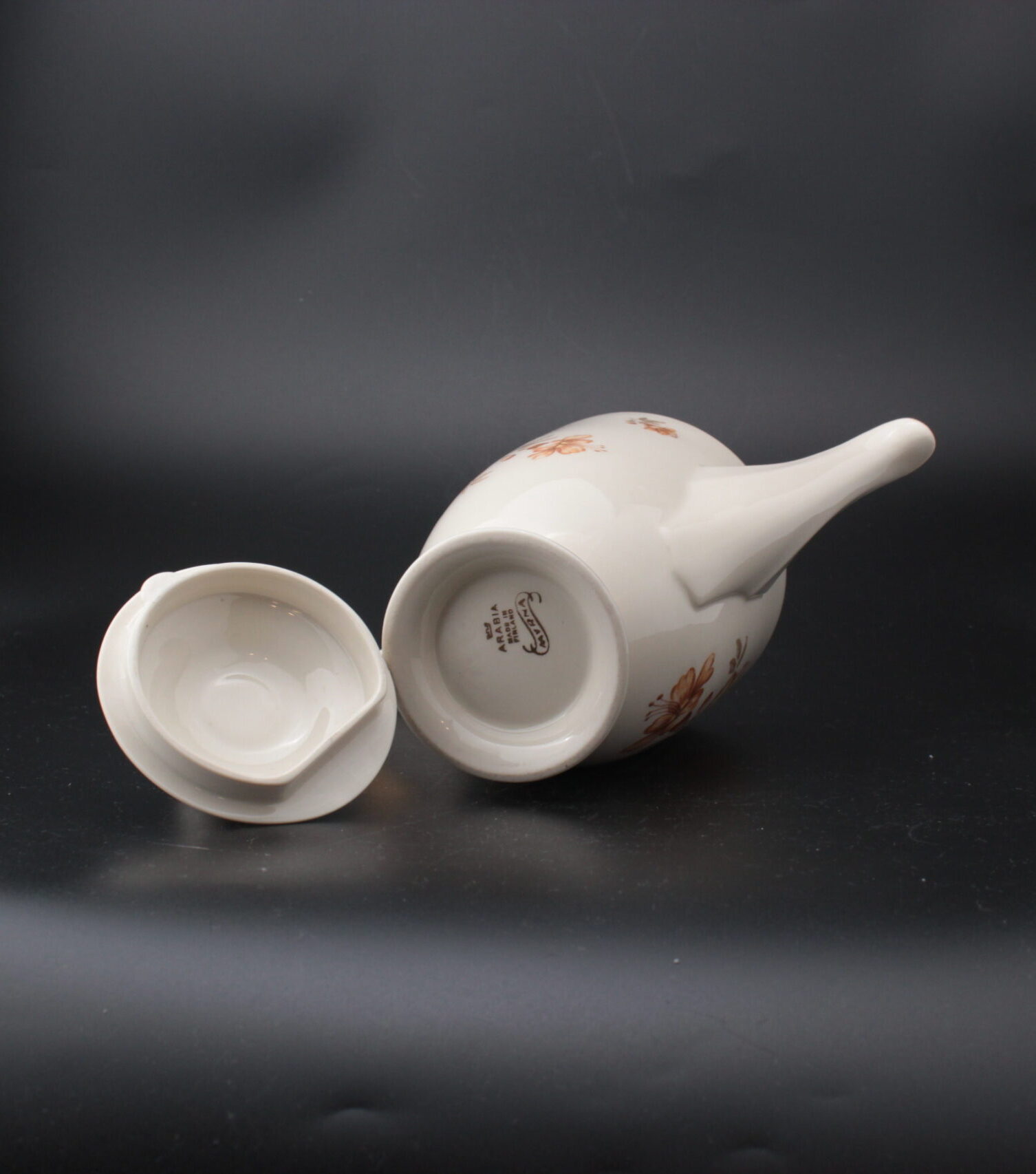 Mitat: korkeus 20.5 cm, halkaisija 11 cm, leveys nokan ja sangan kera 23 cm, paino 740 g