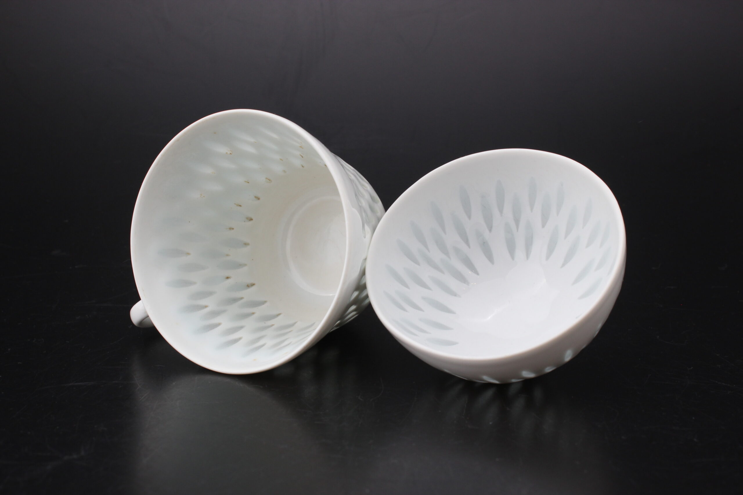 Huom: massasigneeratut, myydään yhden kupin, tassin, lautasen ja kulhon settinä