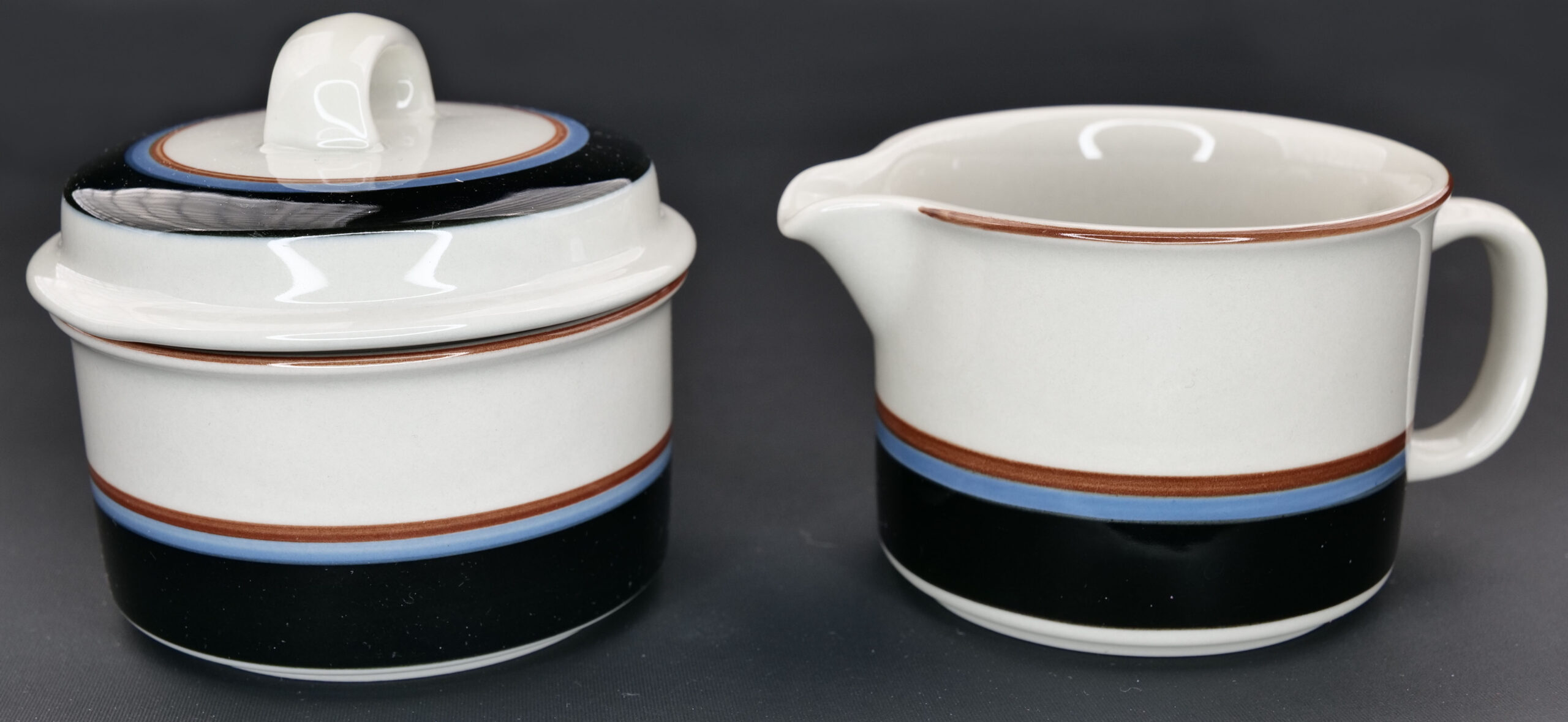 Mitat: sokerikko korkeus 10 cm, halkaisija 9.8 cm, paino 386 g, kermakko korkeus 6.6 cm, halkaisija 9 cm, paino 253 g
