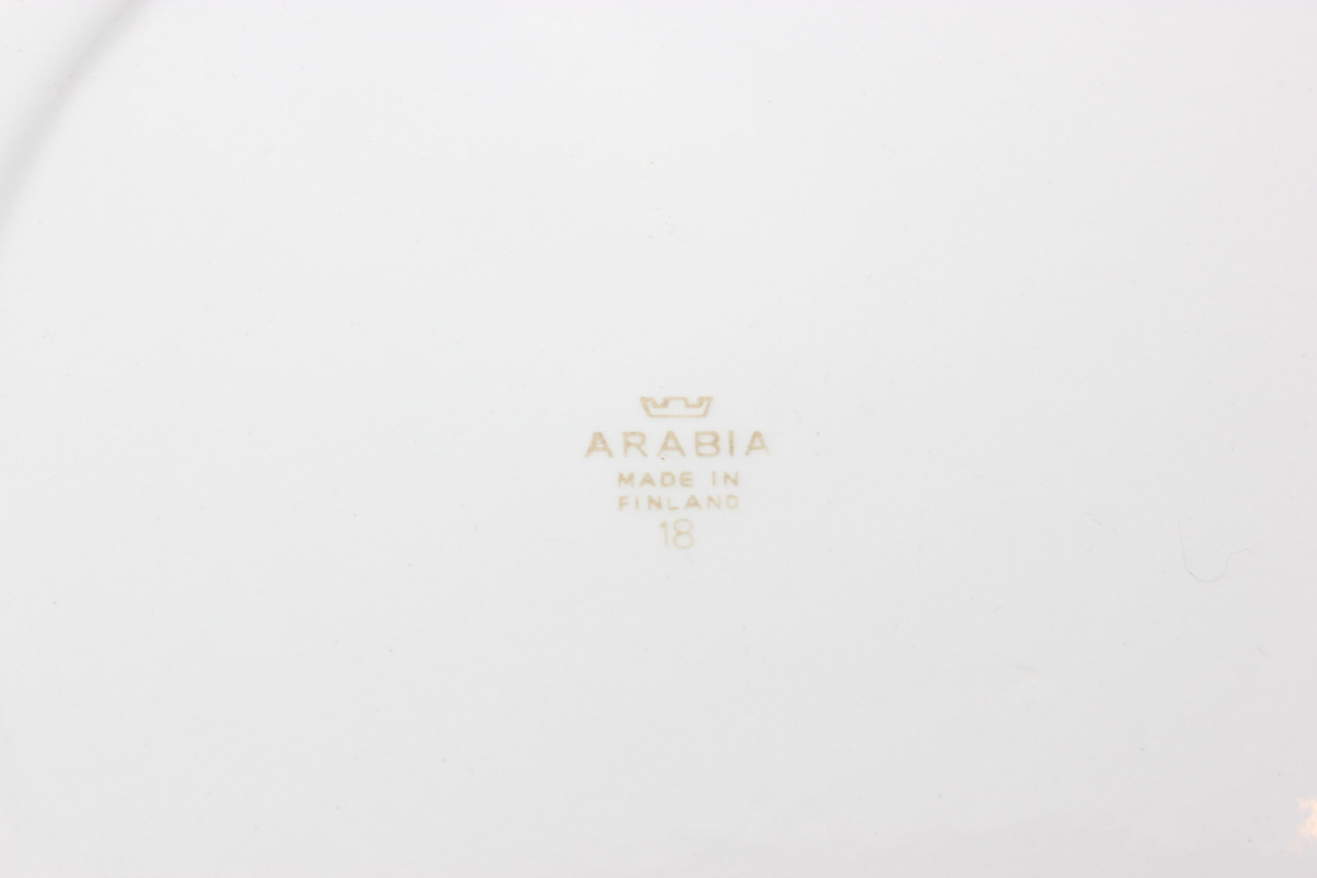 Kunto: ehjä, käytön jälkiä, pieniä naarmuja, lasitteen alla pieni ruskea piste
