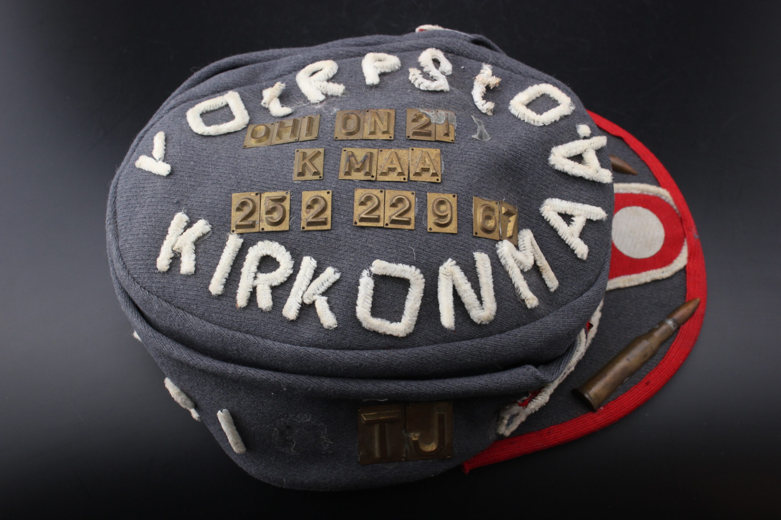 Viimeisen päivän kunniaksi koristeltu armeija hattu.