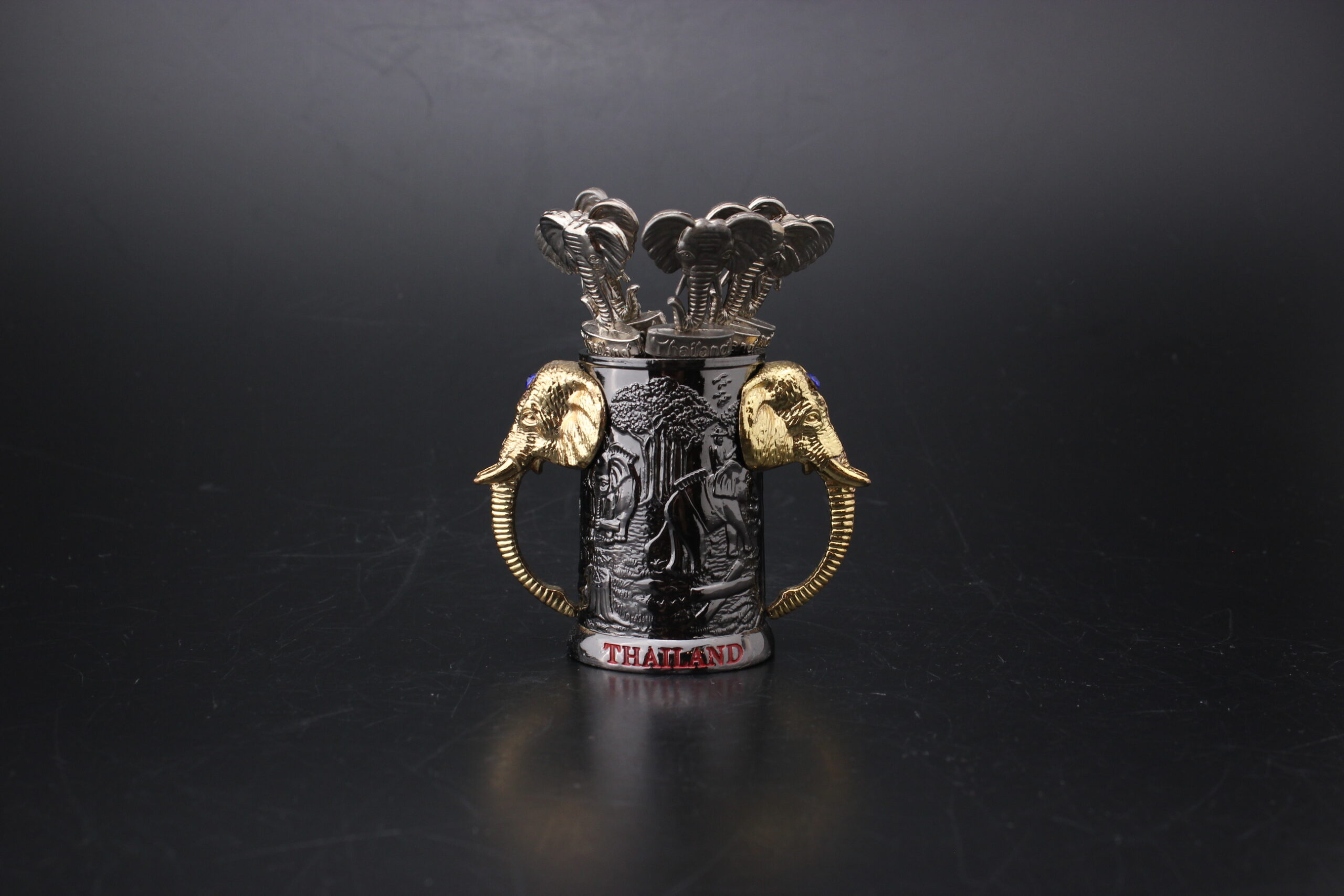 Mitat: telineen korkeus 6,5 cm, tikkujen pituus 10 cm, paino 193 g
