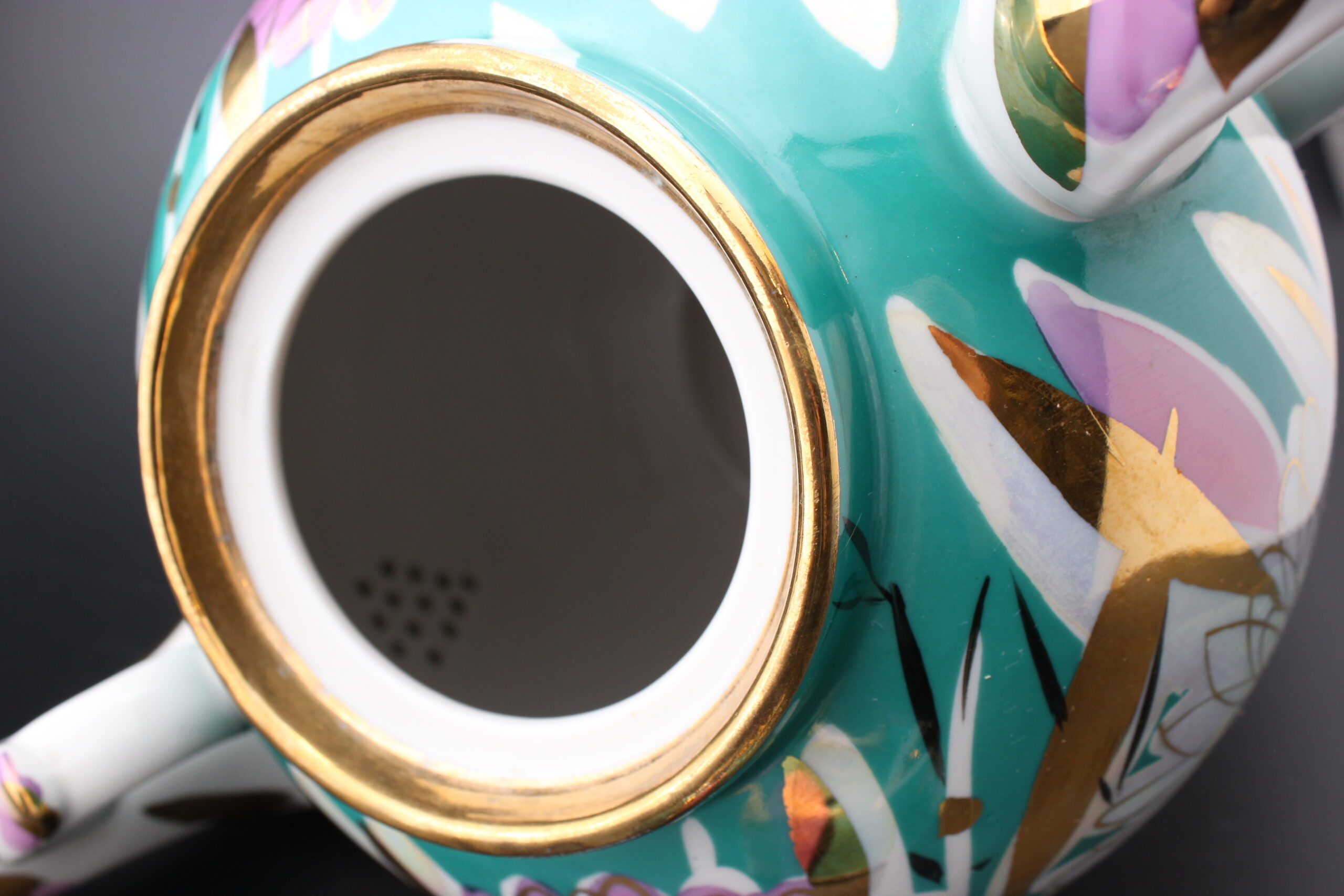 Mitat: Korkeus 24 cm, halkaisija 18 cm, leveys sangan ja nokan kera 32 cm, paino 1870 g