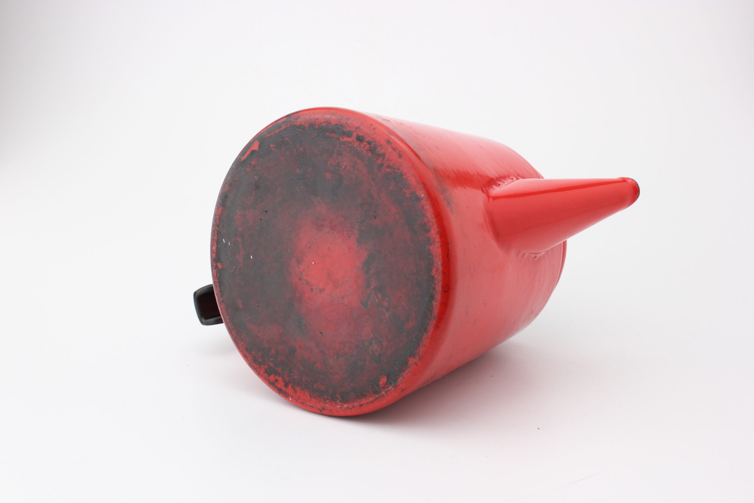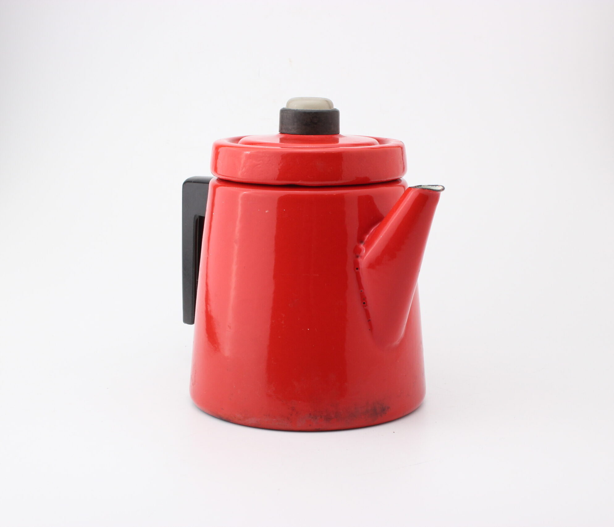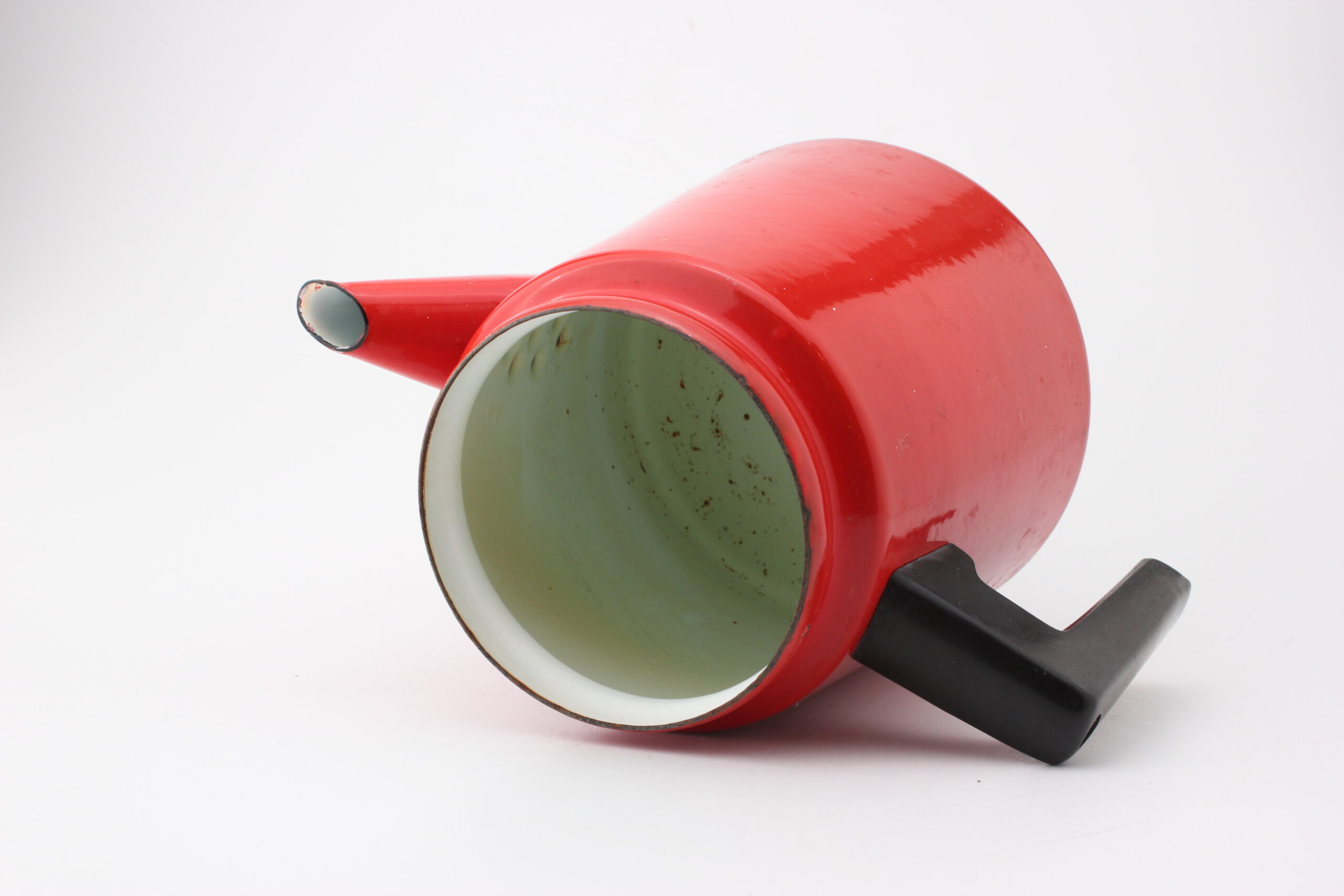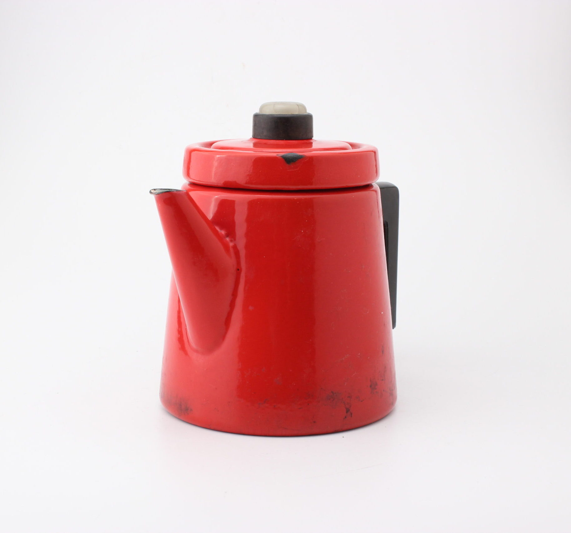 Kunto: ehjä, paljon käytön jälkiä, emali reunoista vaurioitunut, sisällä ruostetta ja isoja narmuja, kannessa emalivaurioita, tummentumaa