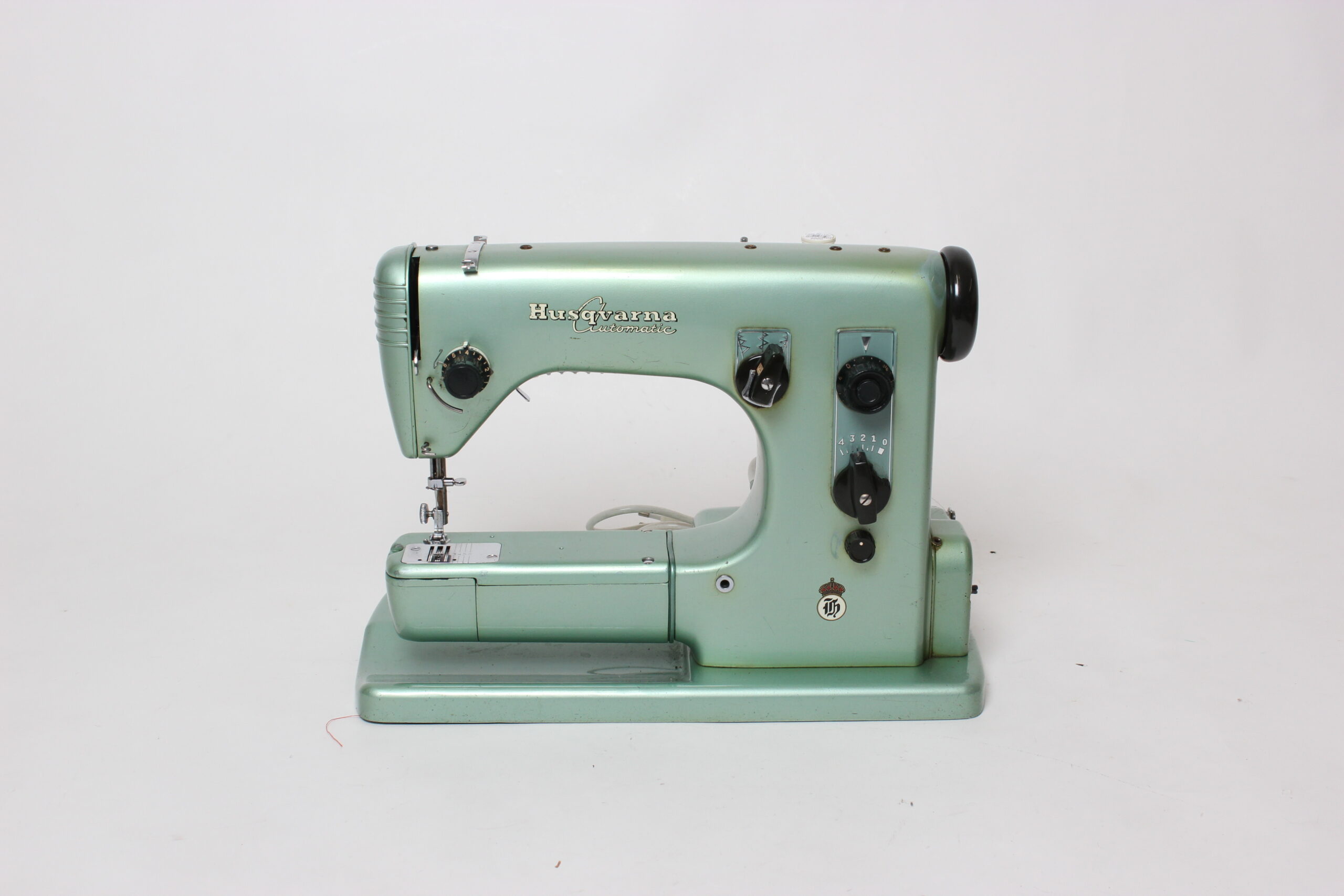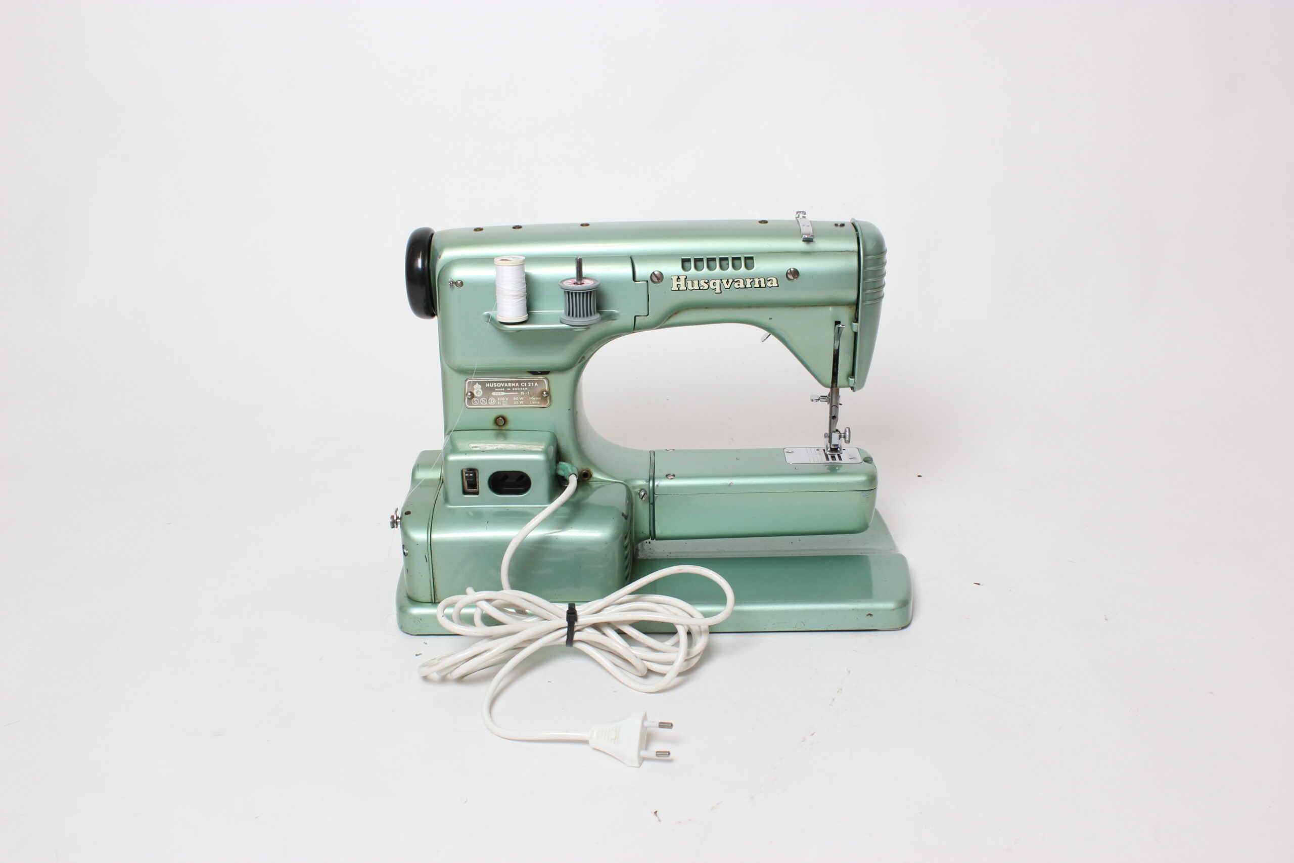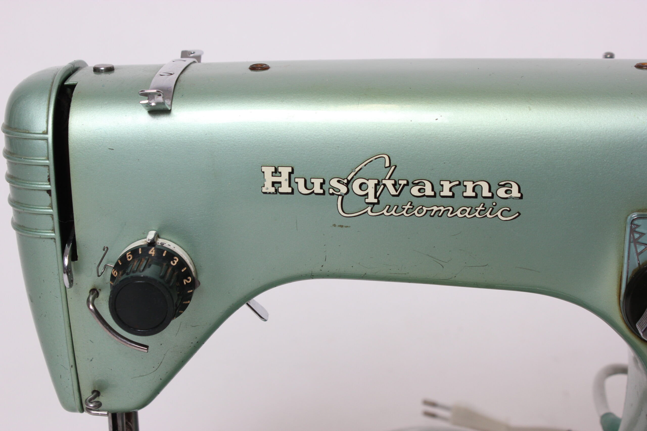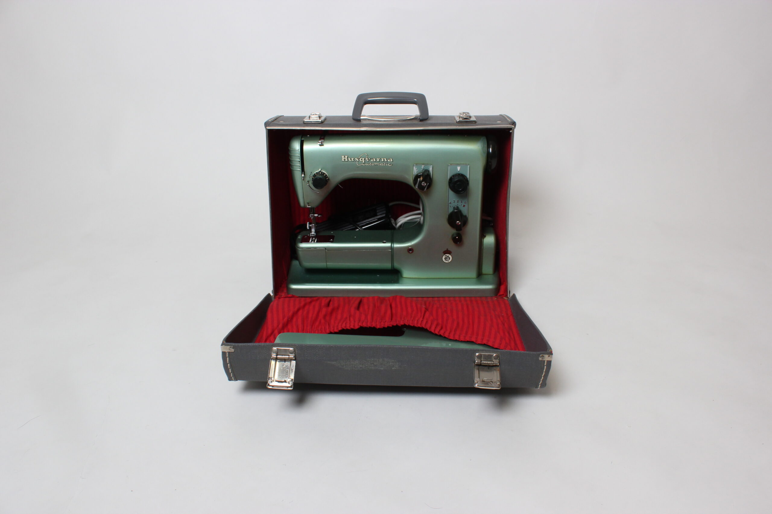 Kaunis vintage Husqvarna ompelukone. Kone käynnistyy, valo palaa ja mekaniikka liikkuu. Settiin kuuluu kone, paininjalka, lisäompelutaso ja säilytyslaukku.