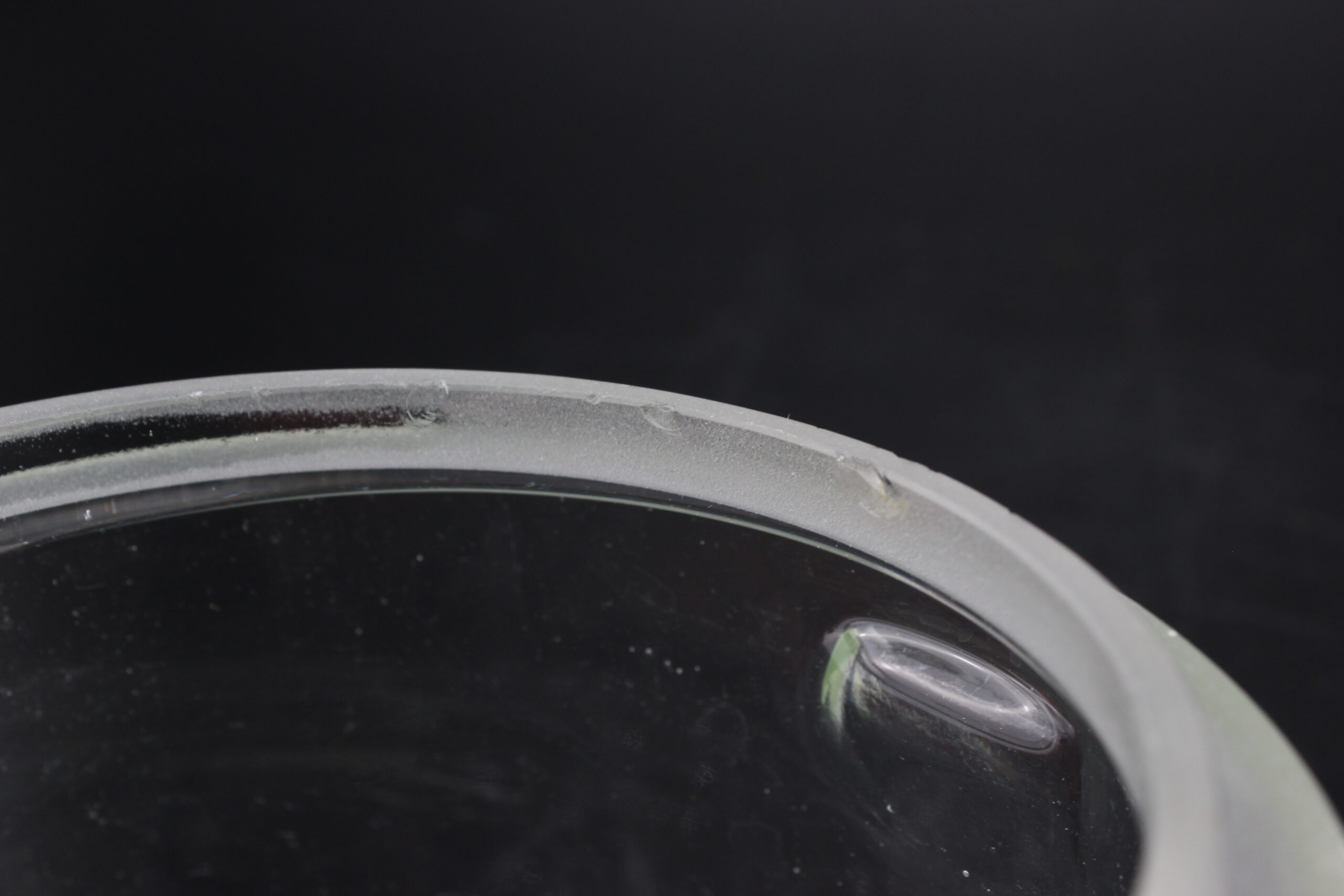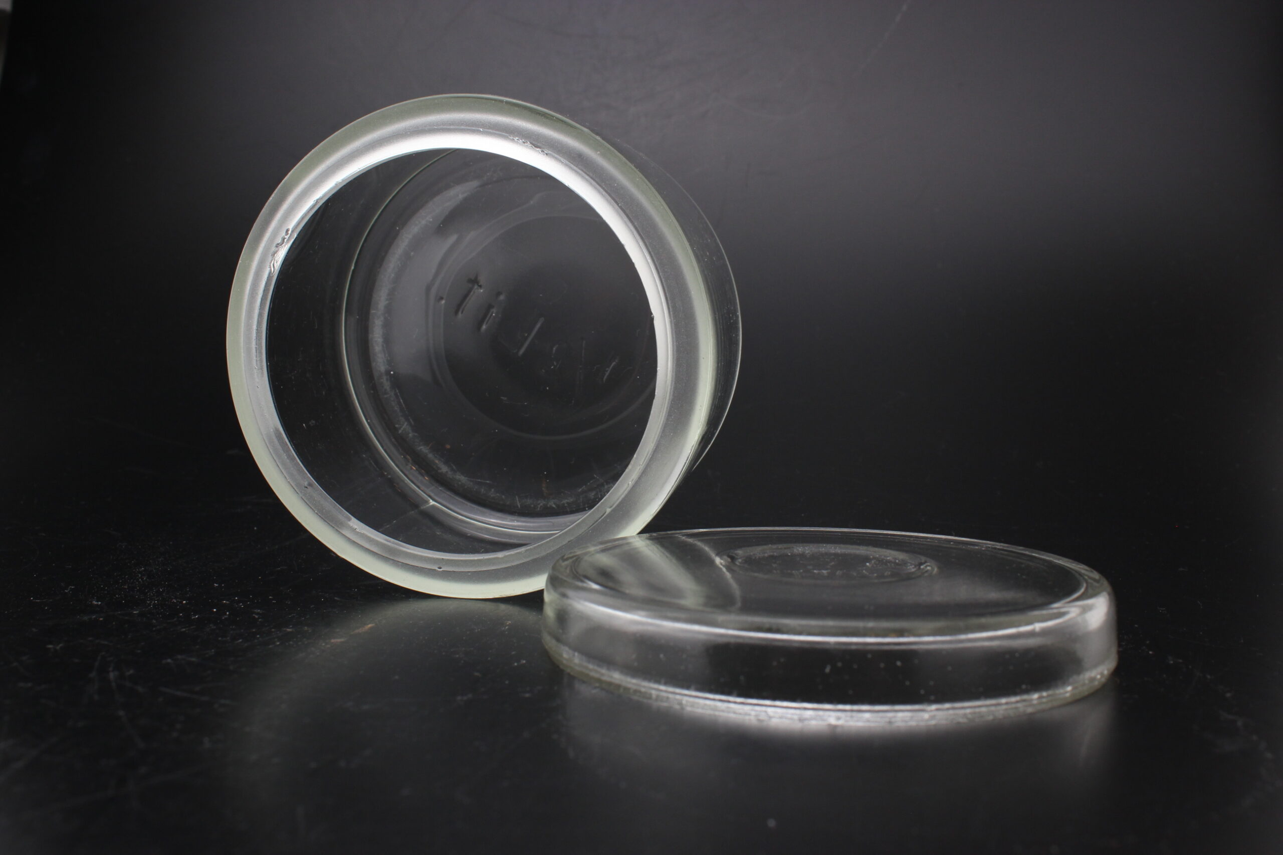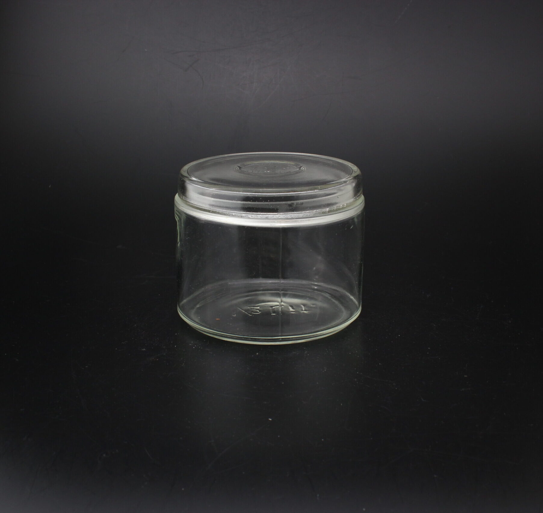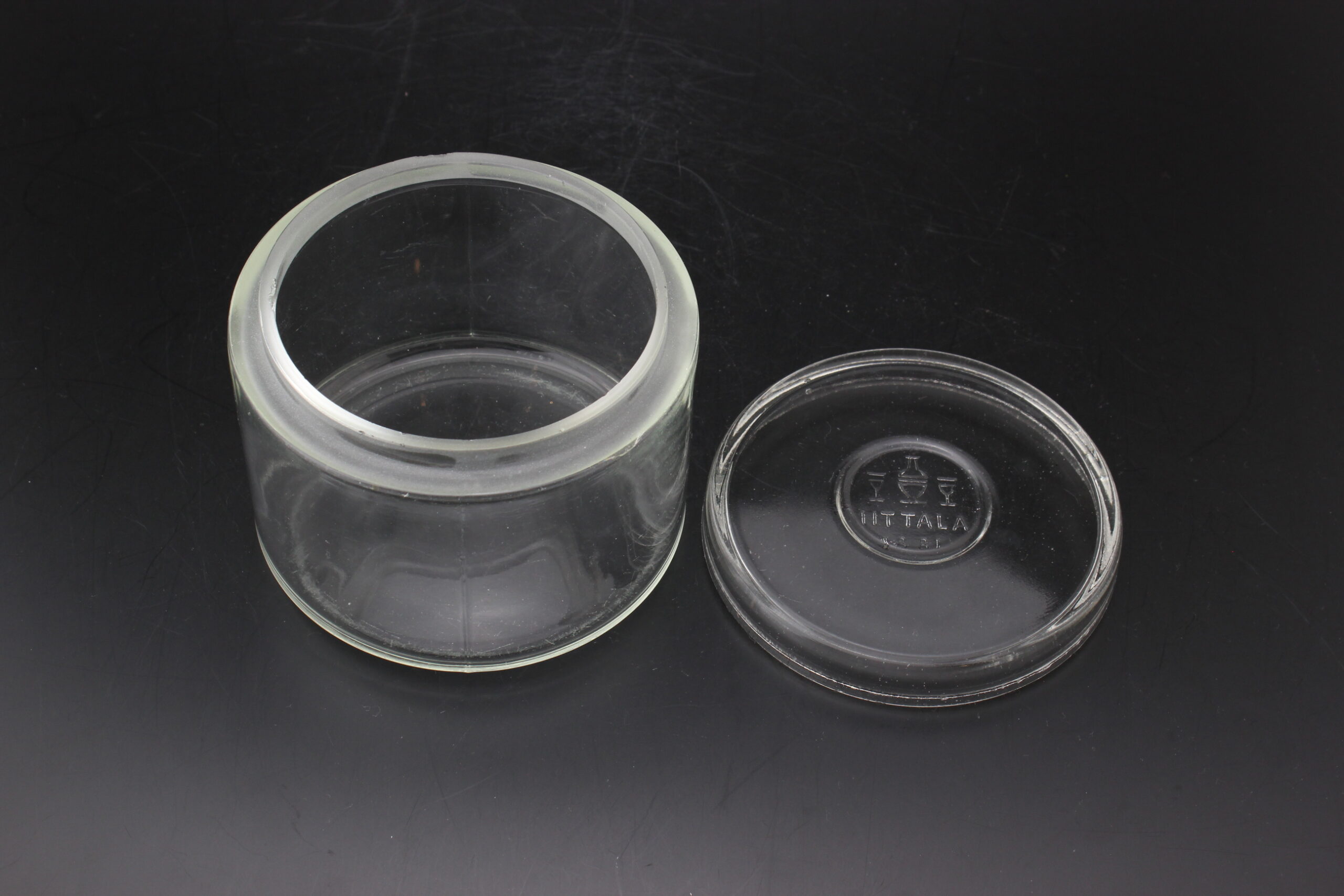 Kunto: purkin yläreunassa säröjä, käytön jälkiä, pohjassa naarmuja