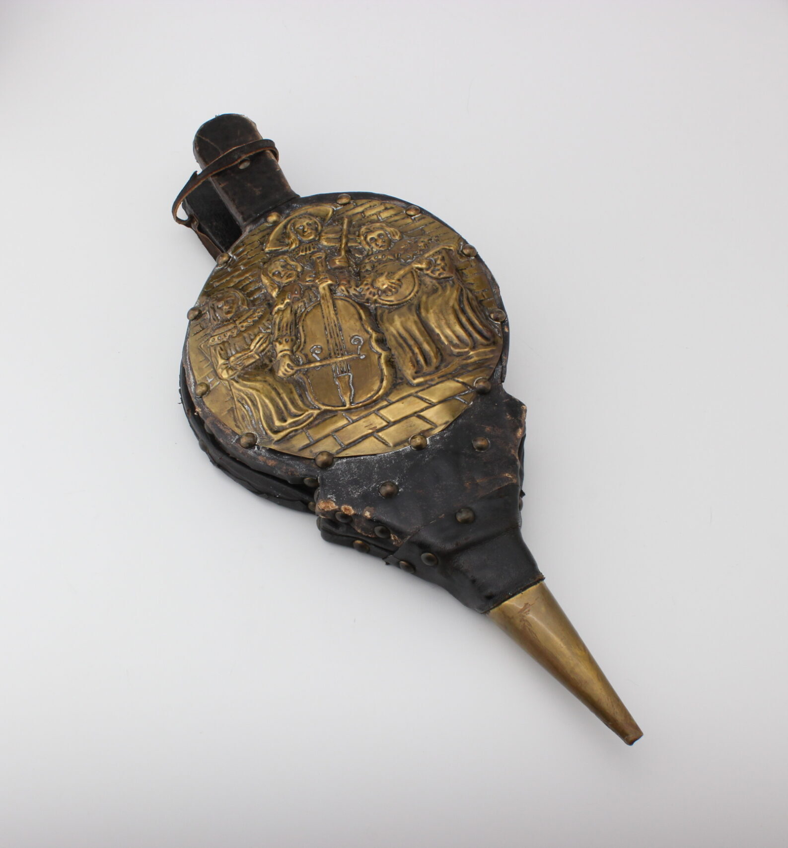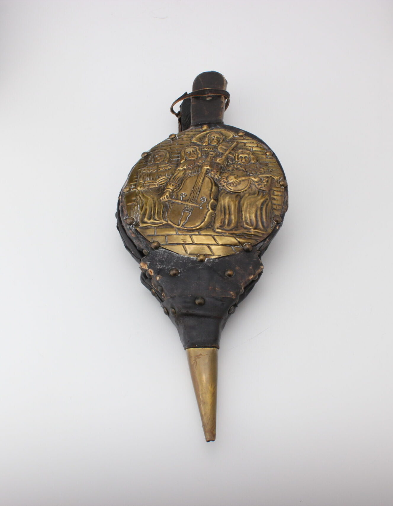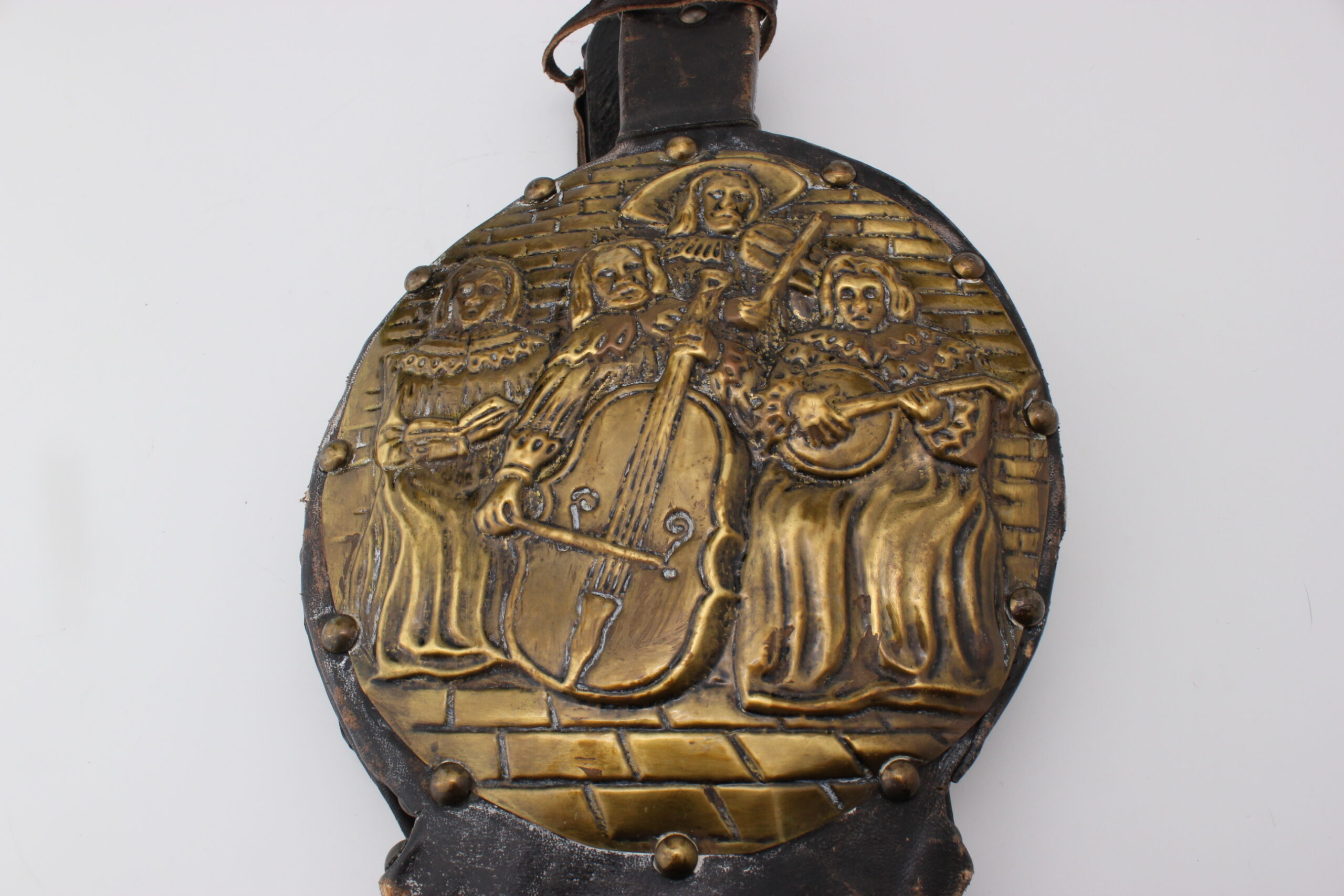 Kauniit koristeelliset palkeet joissa metallinen kuvitus soittajista
