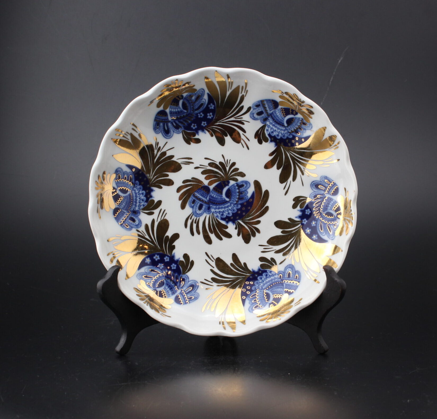 Väri: valkoinen, koristelu sininen ja kullanvärinen
