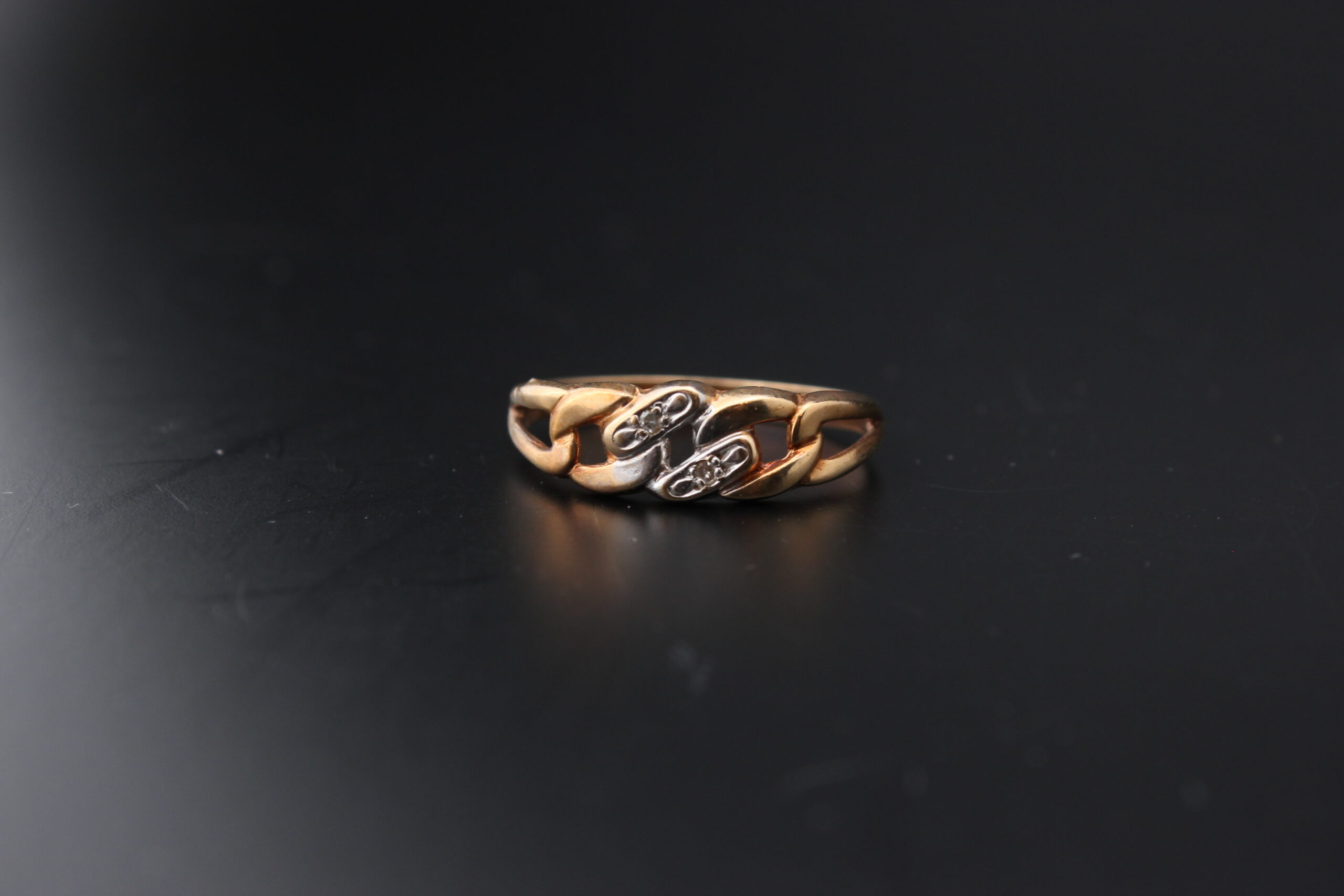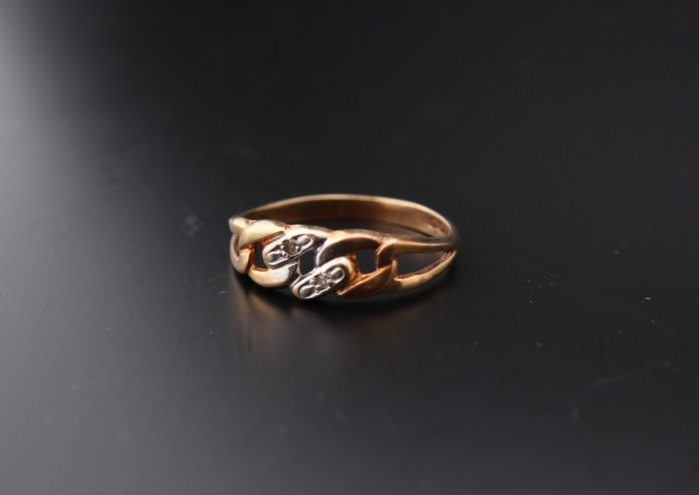 Lahjaksi tai itselle kaunis 14 karaattinen sormus jossa kaksi kirkasta korukiveä.