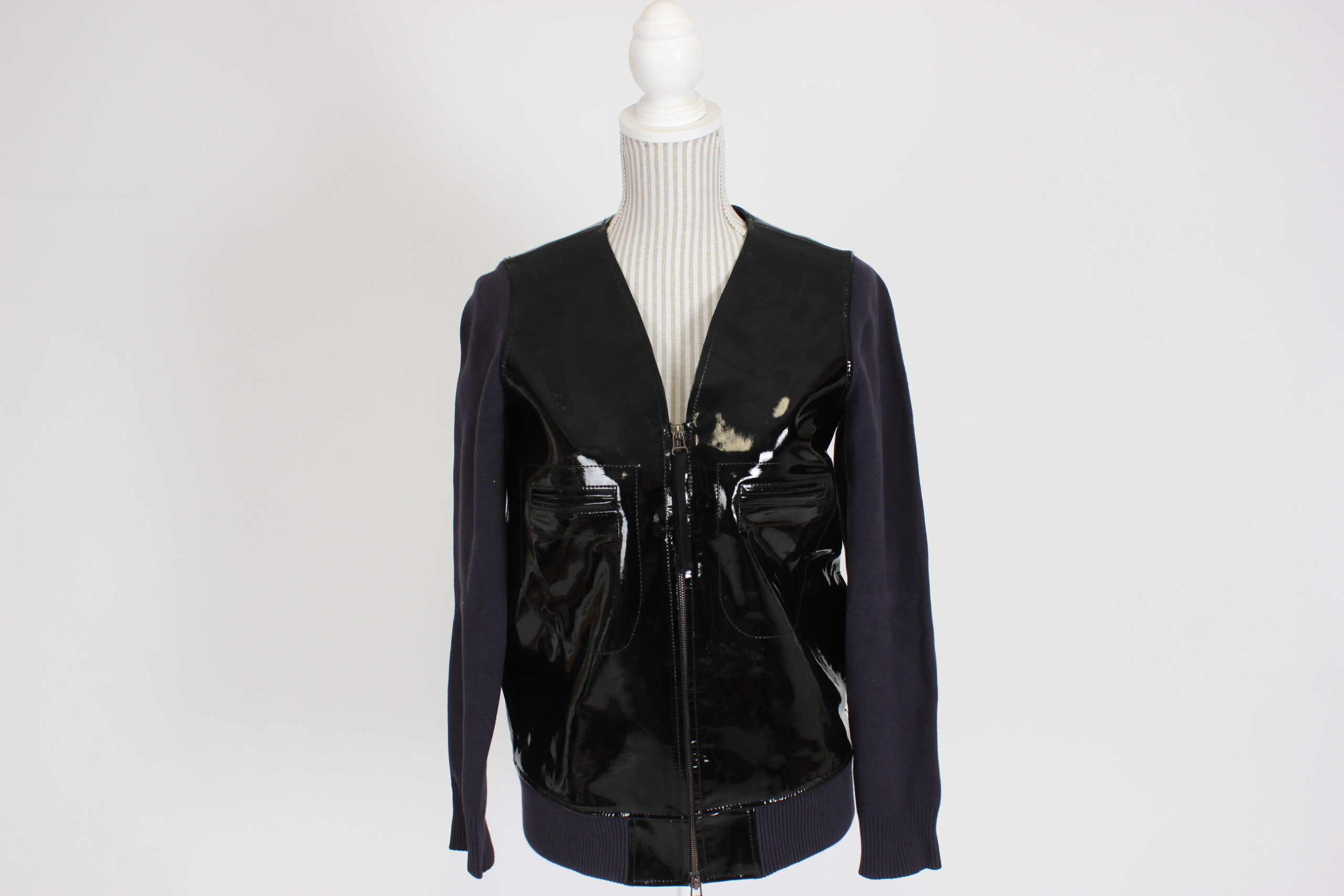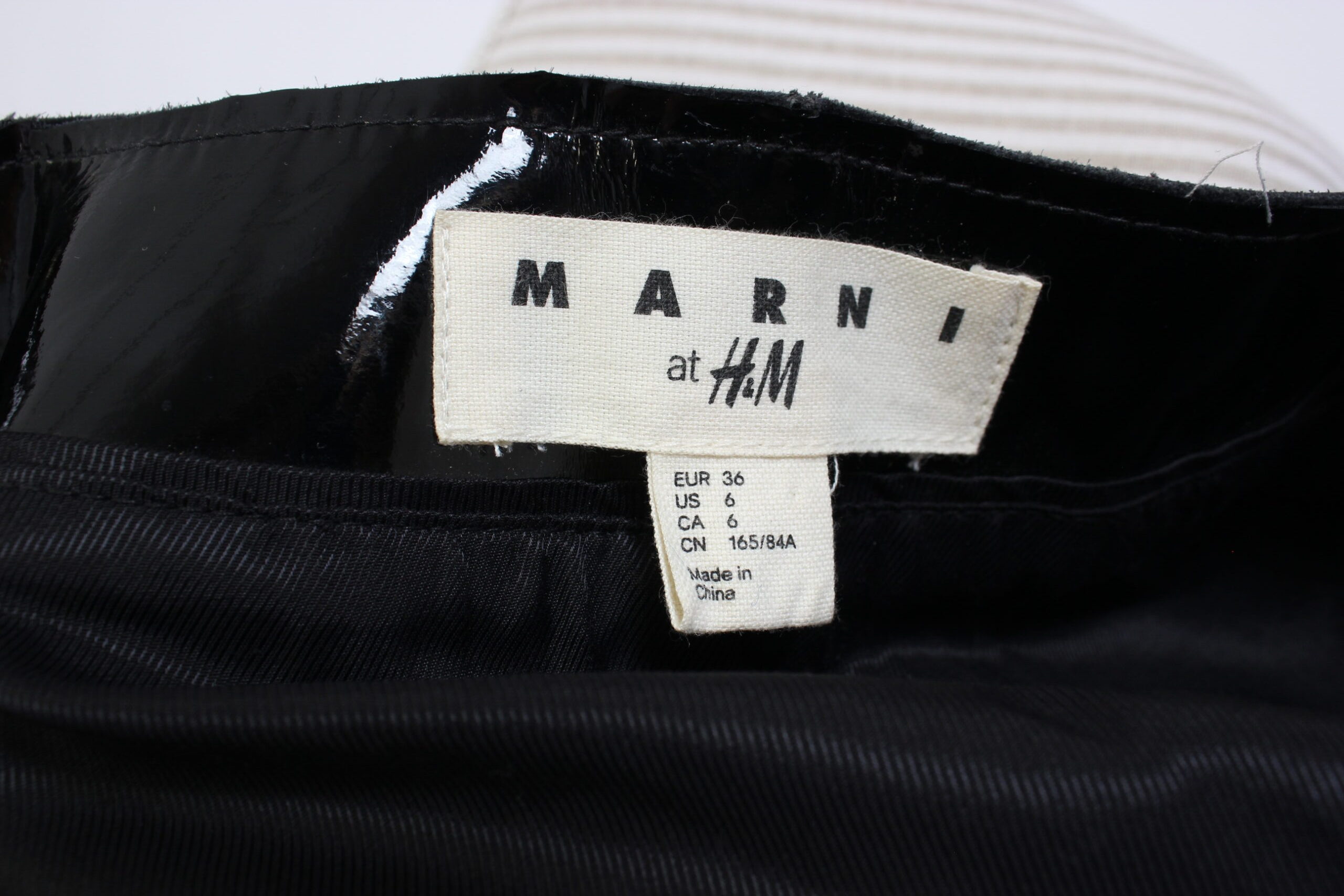 Marnin ja H&M:n yhteistyösä syntynyt nahkatakki jossa on puuvillaiset hihat.