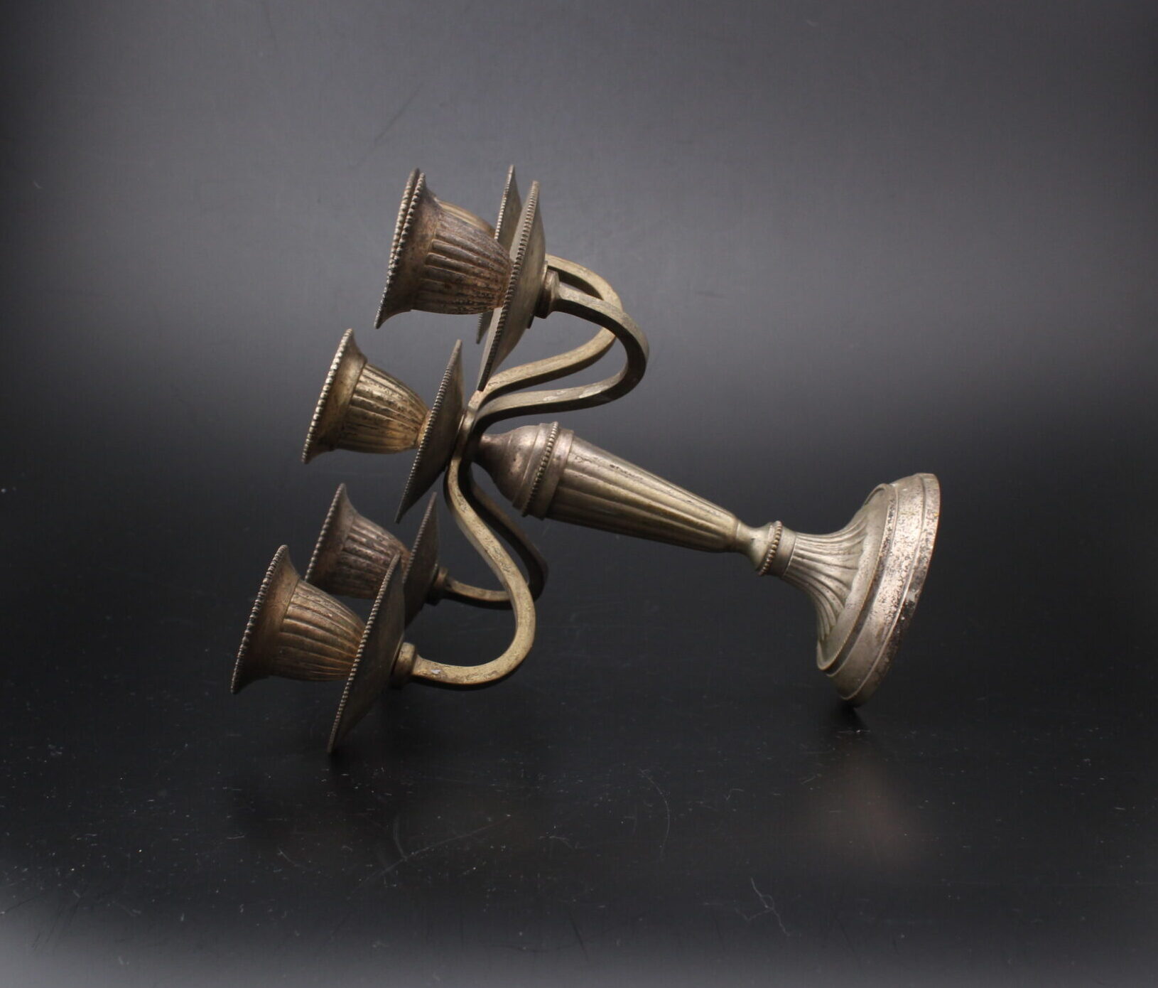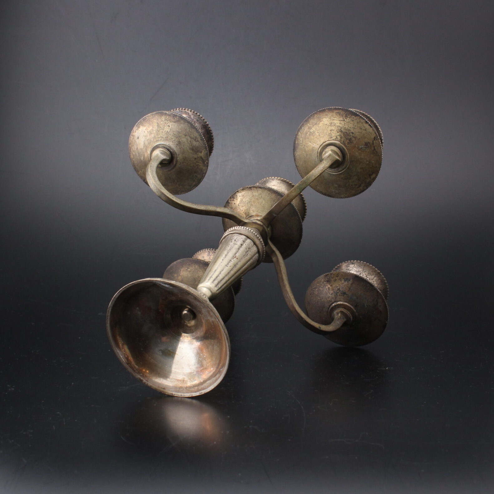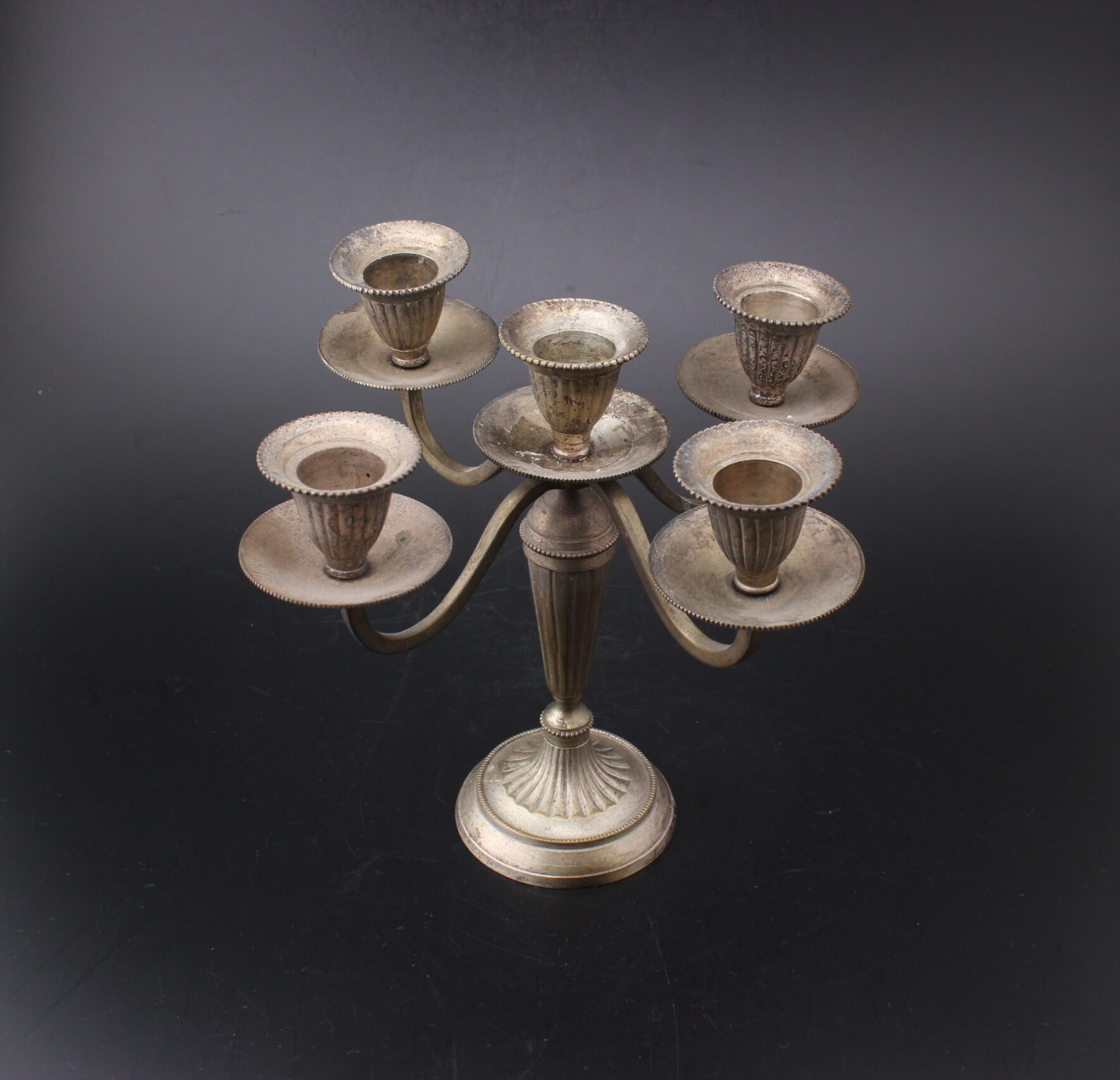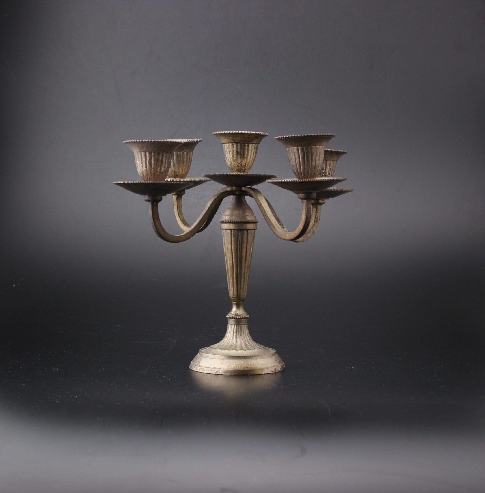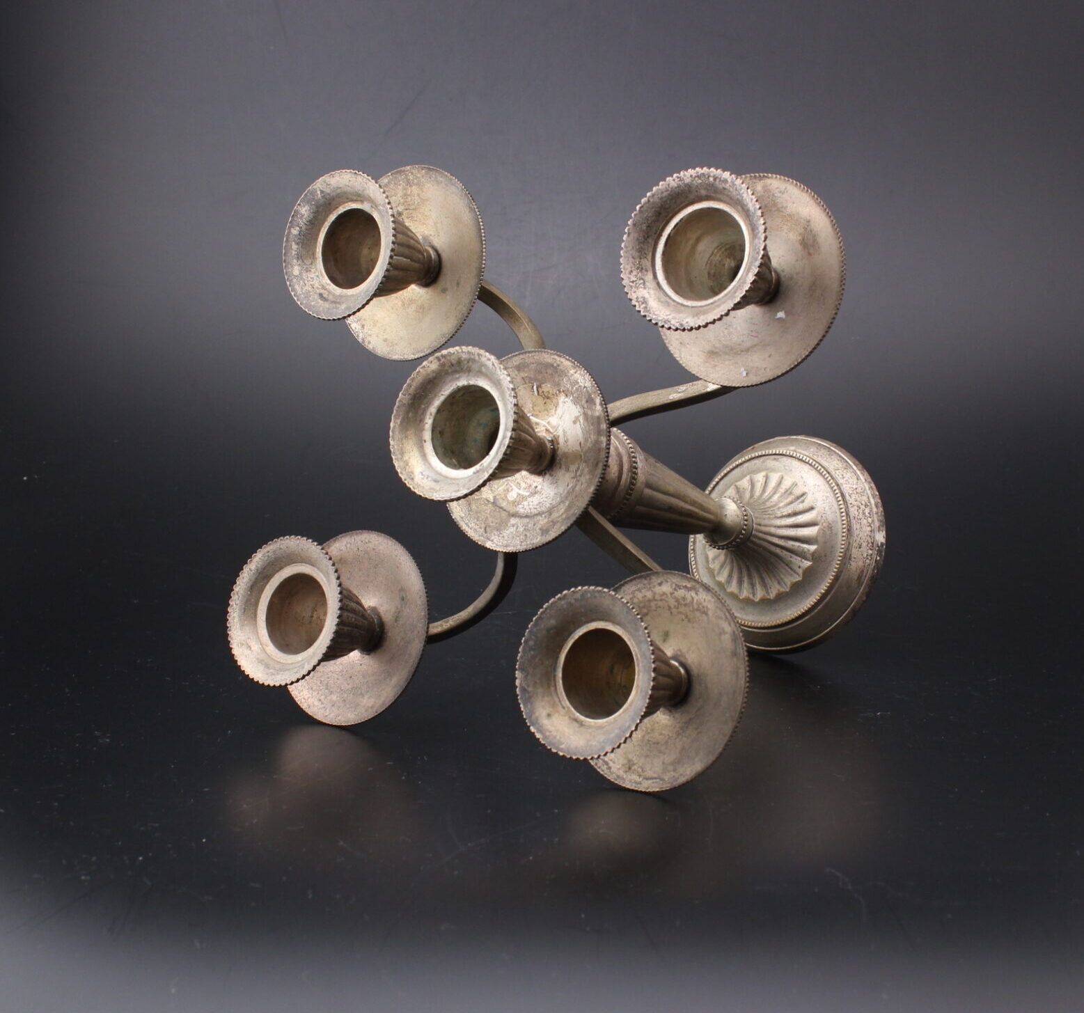Kaunis metallinen kynttilänjalka viidelle kynttilälle.