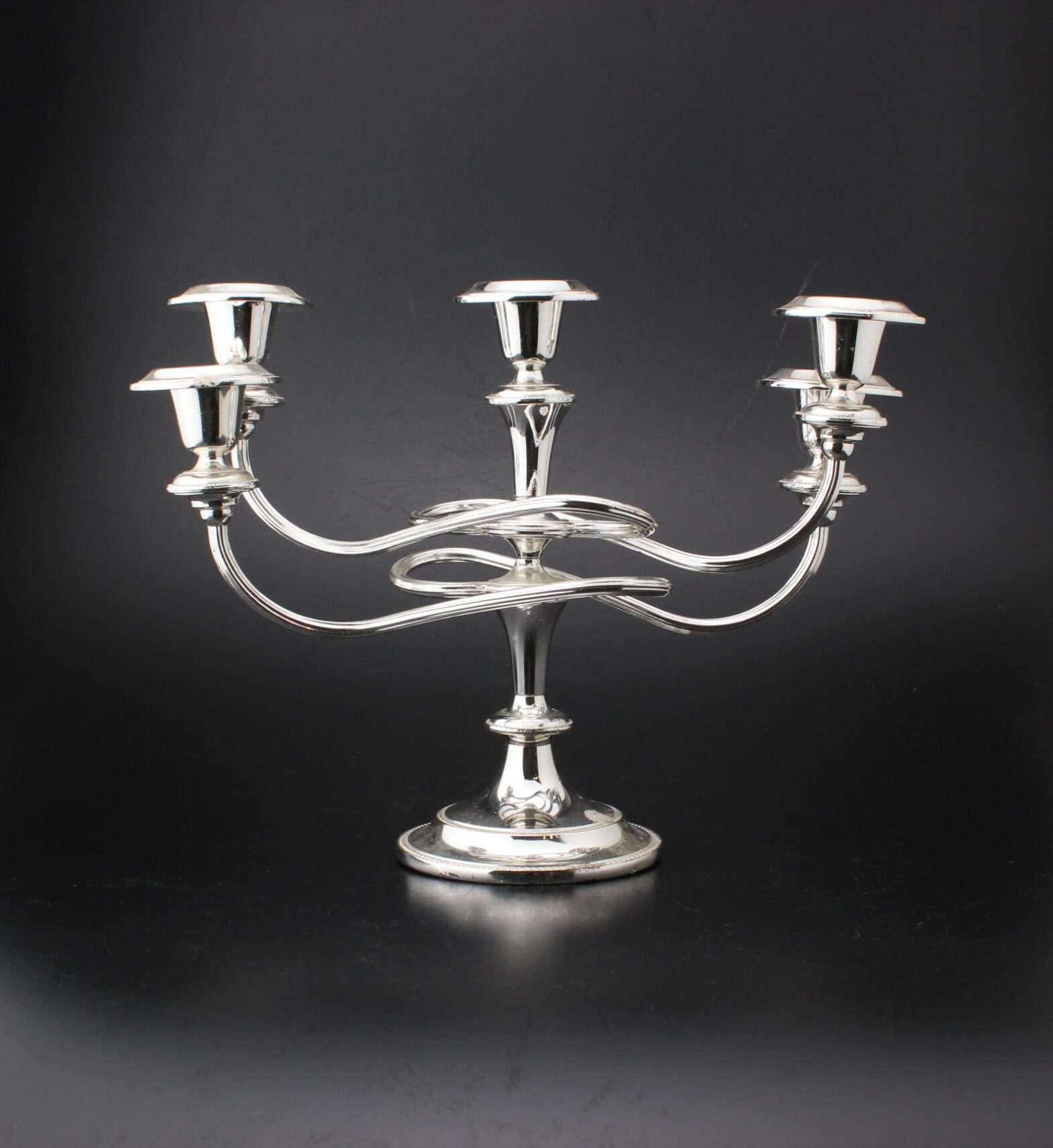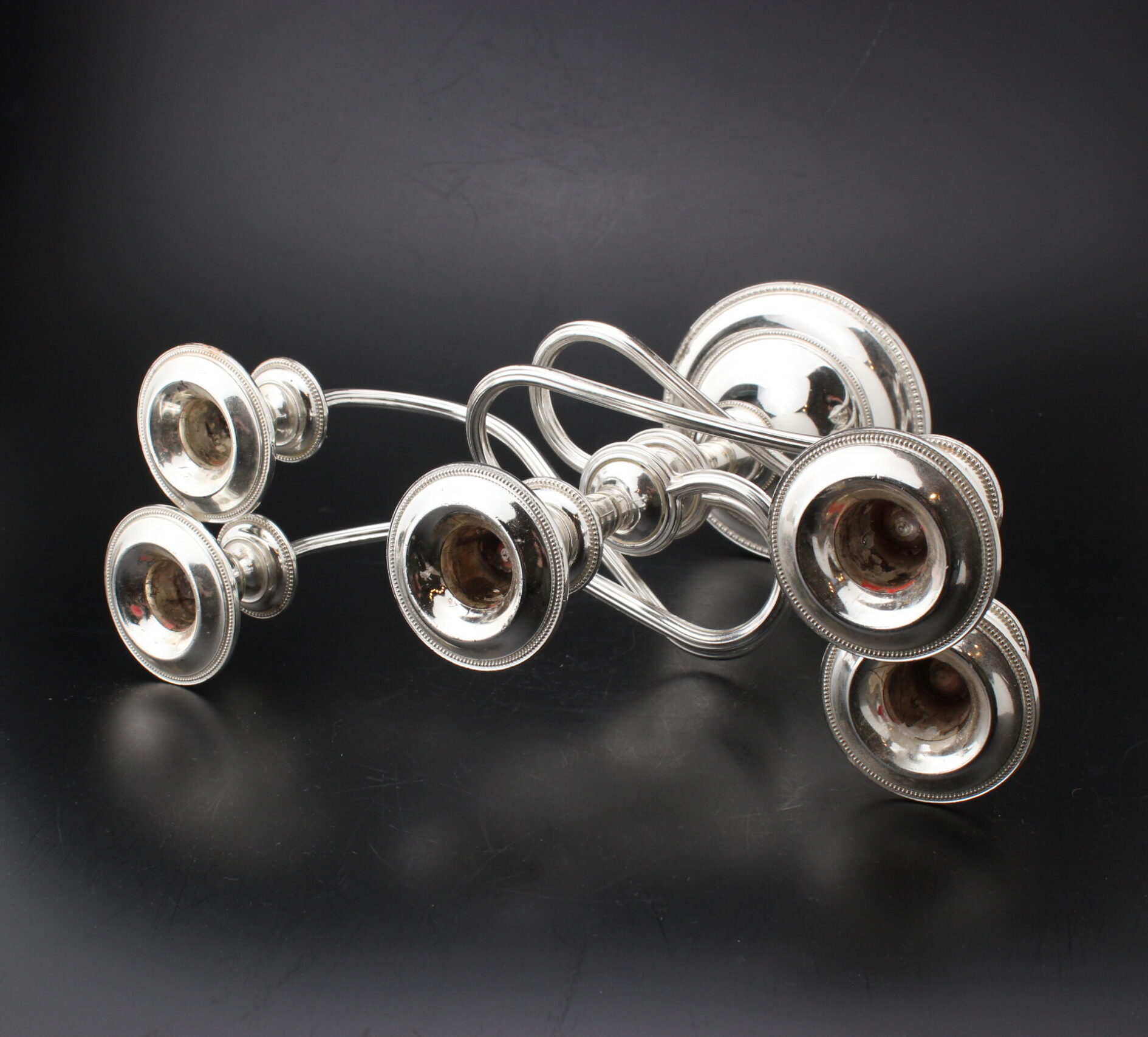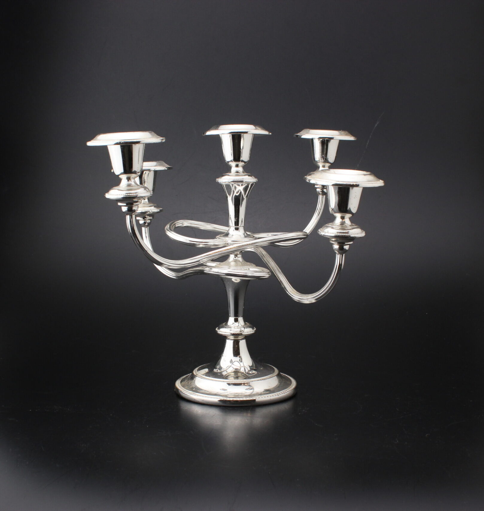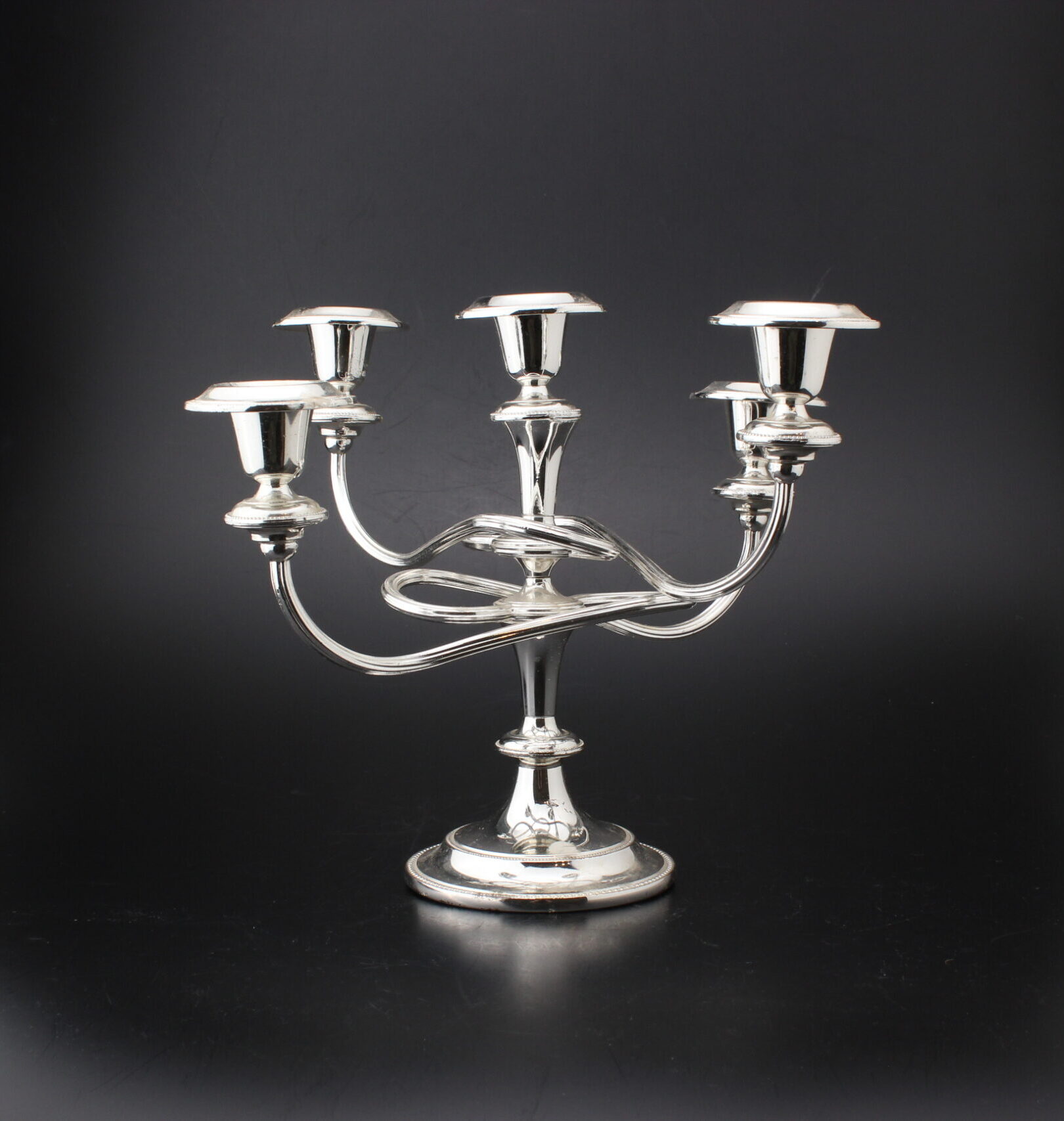Kaunis metallinen kynttilänjalka viidelle kynttilälle.