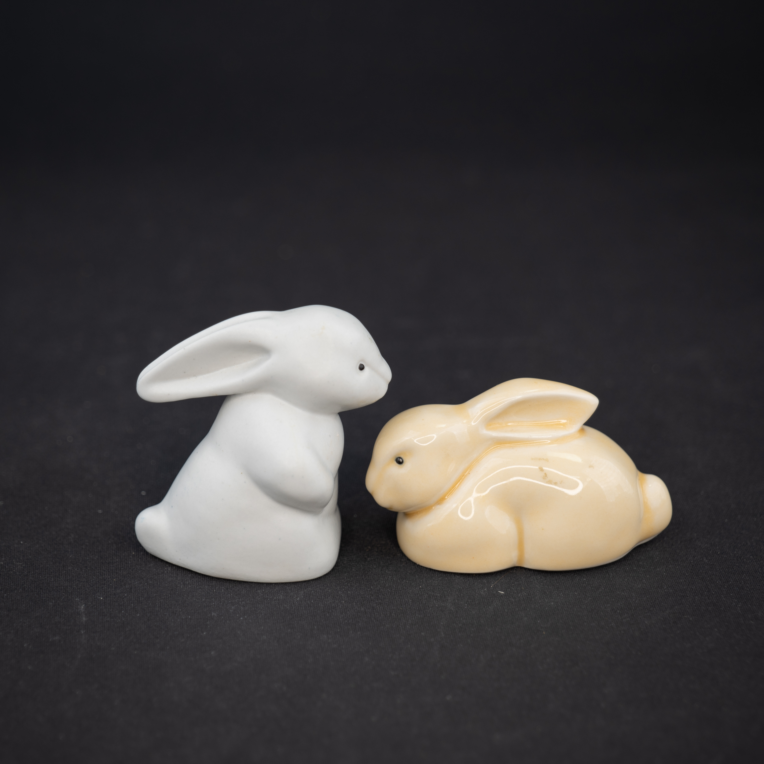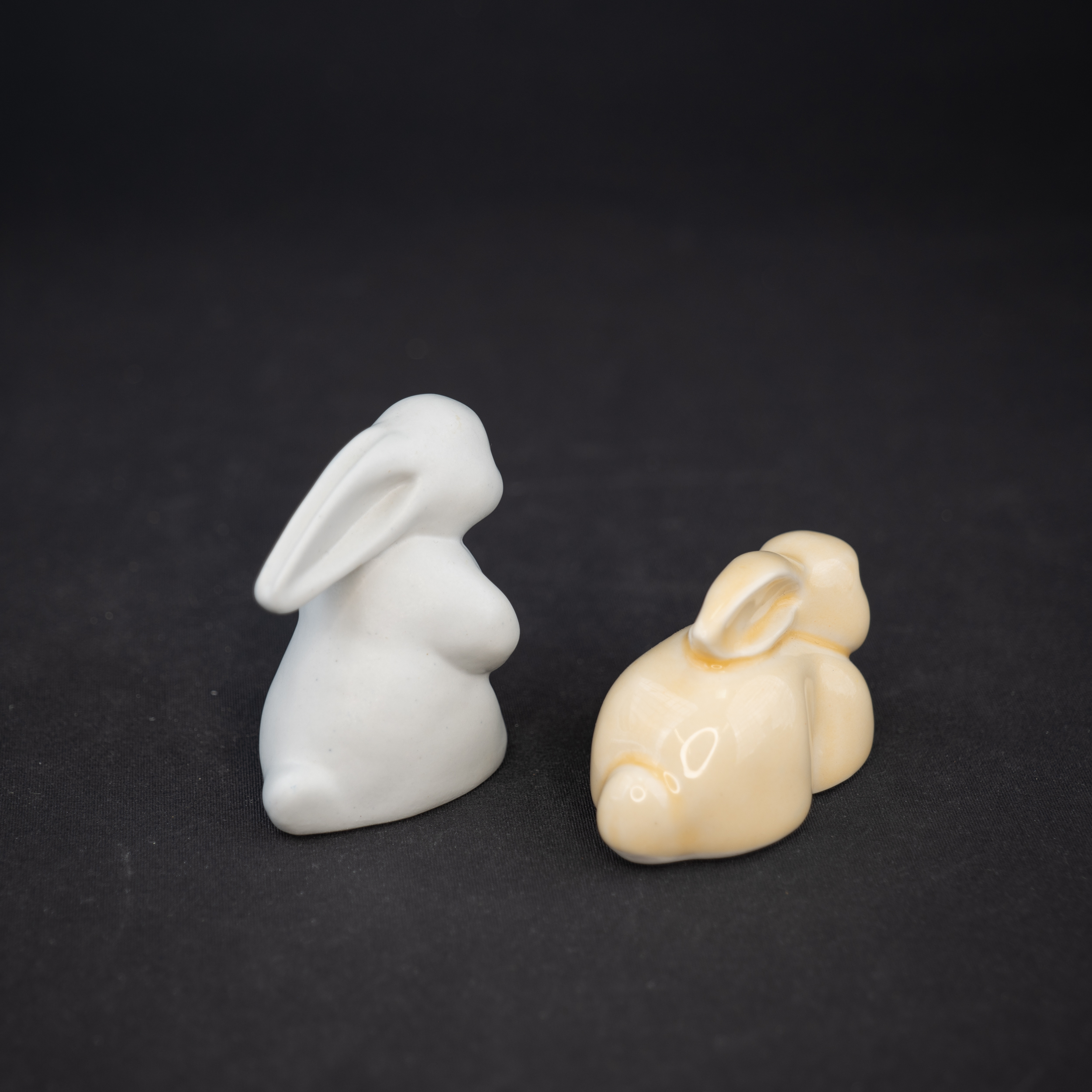 Mitat keltainen pupu: korkeus 5 cm, pituus 9 cm