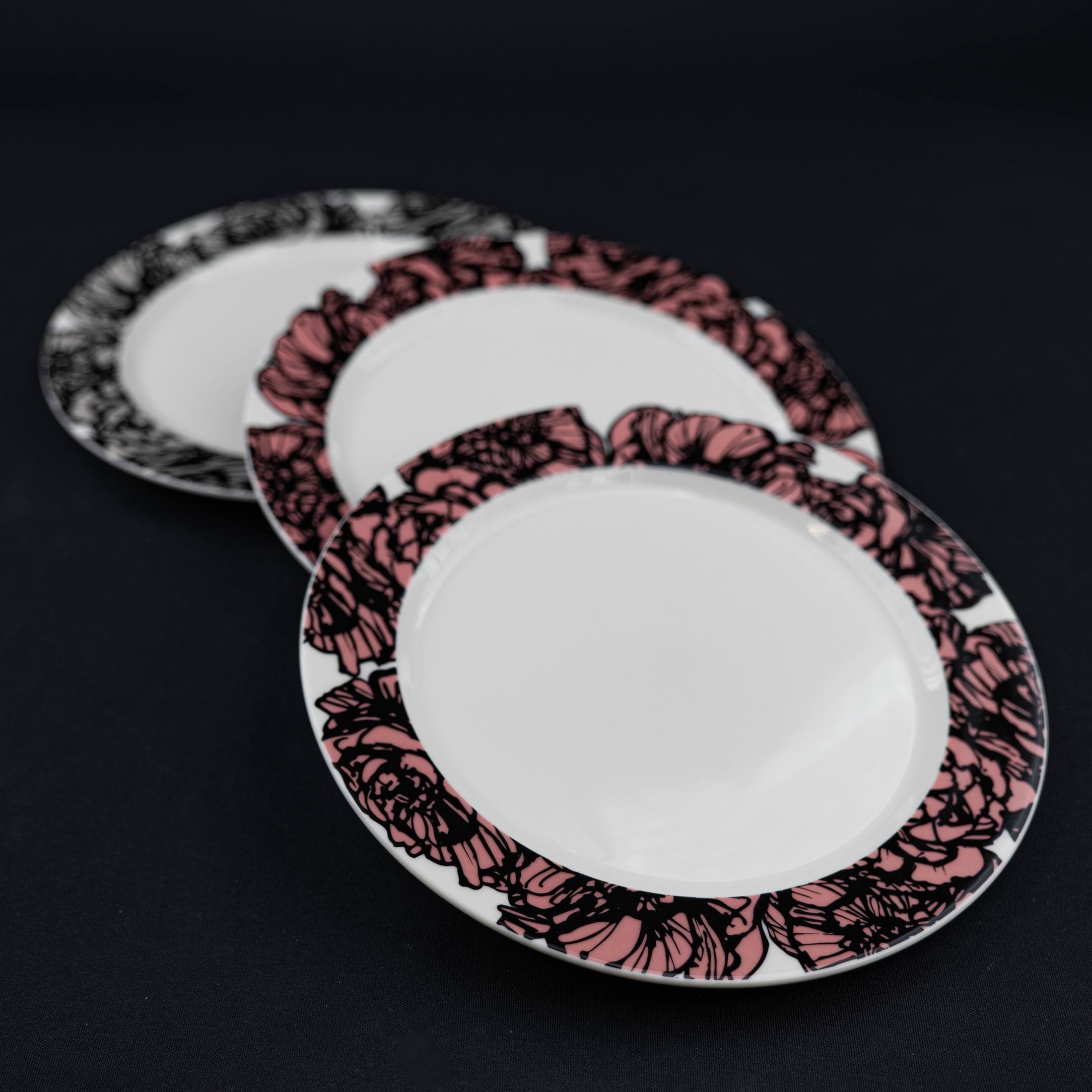 Huom: myydään 3 kpl settinä, sisältää 2 pinkkiä lautasta, 1 harmaan lautasen