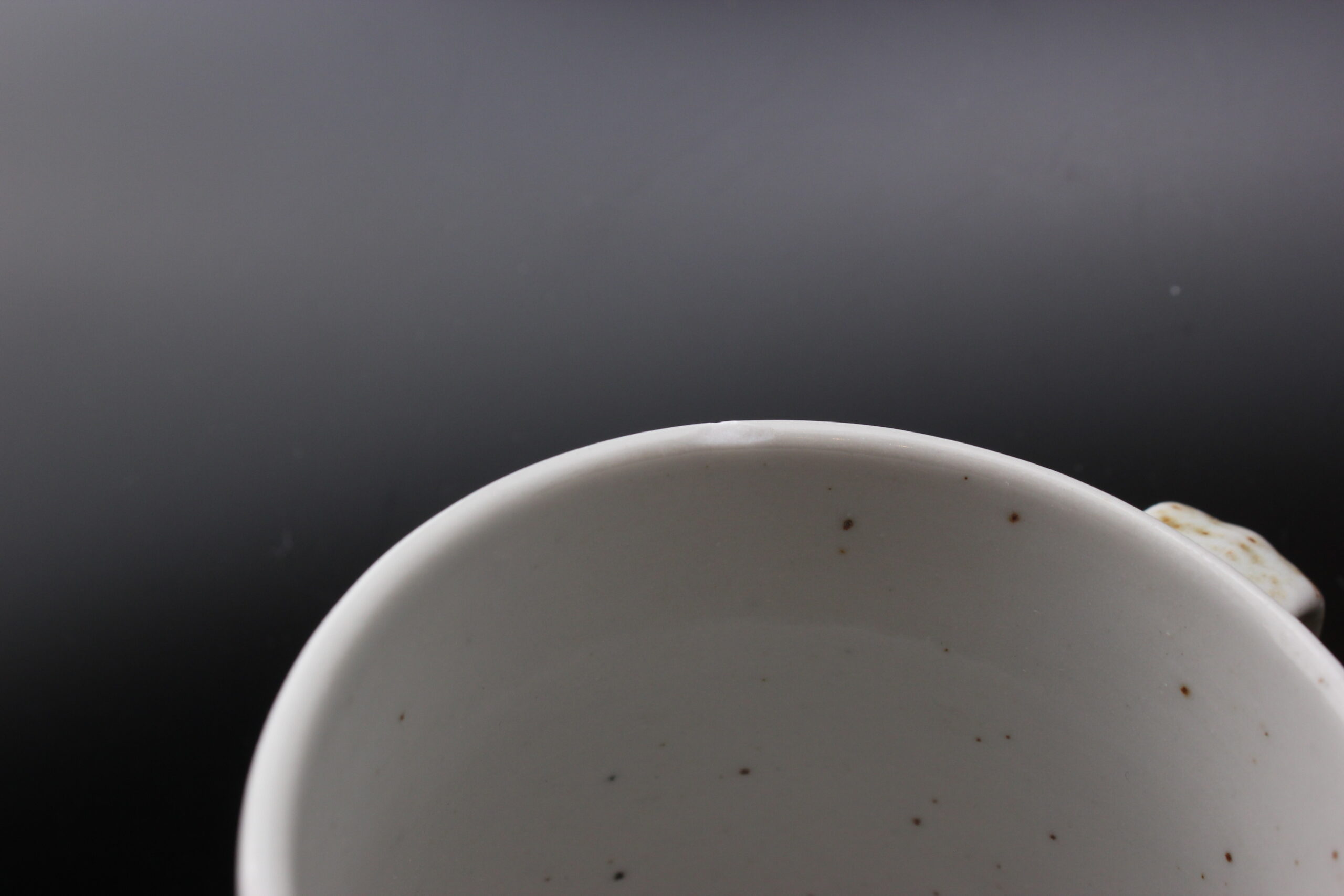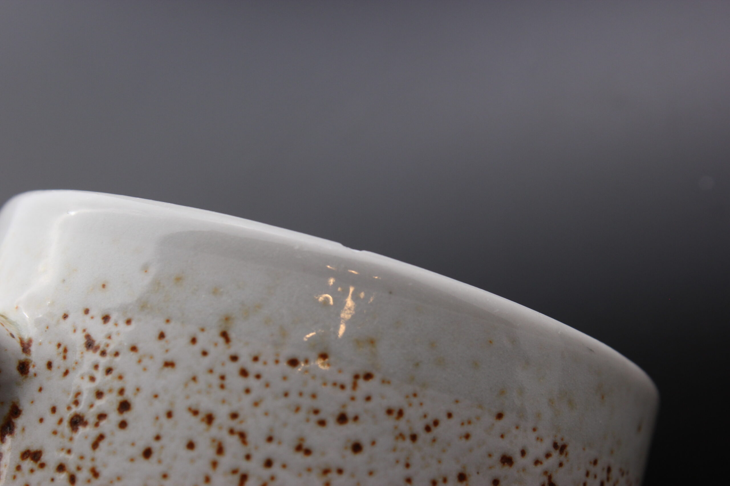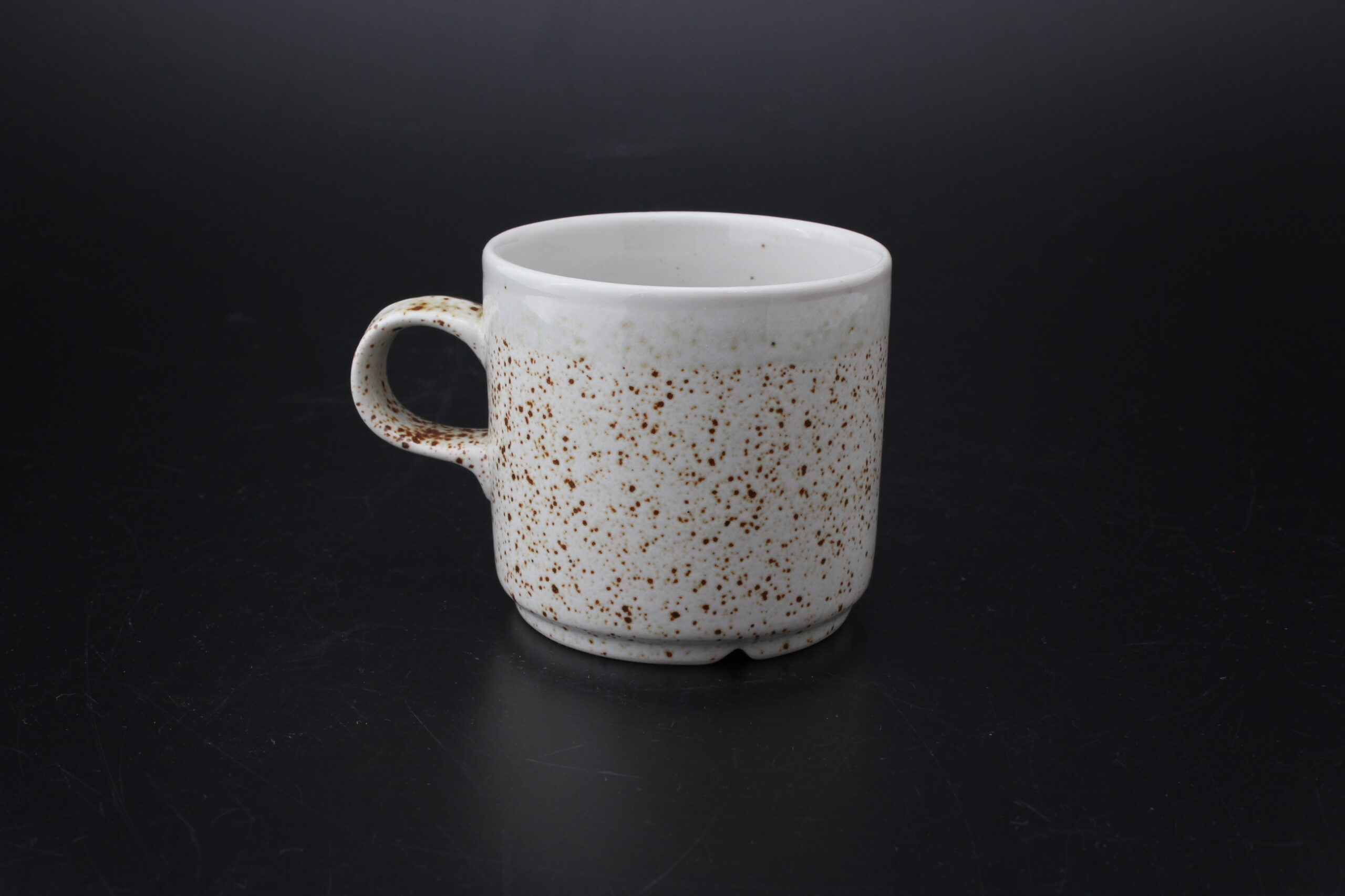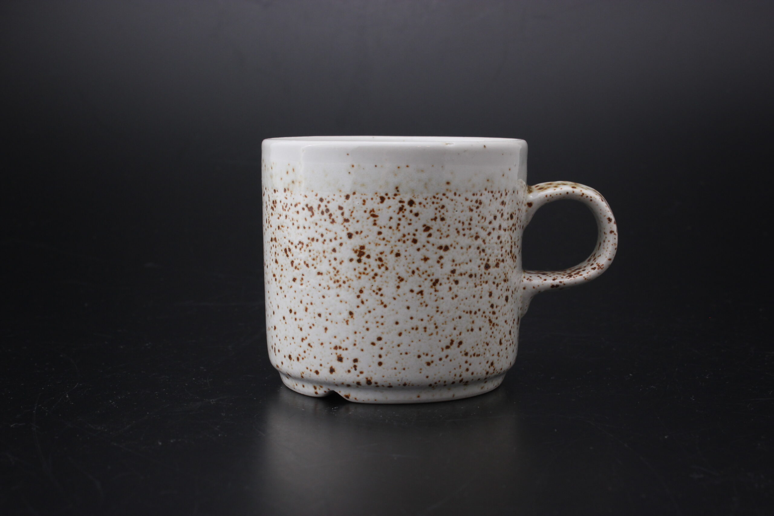Kunto: yhdessä kupissa pieni särö reunassa, hieman käytön jälkiä, pientä kulumaa, ruskeiden pilkkujen määrä vaihtelee
