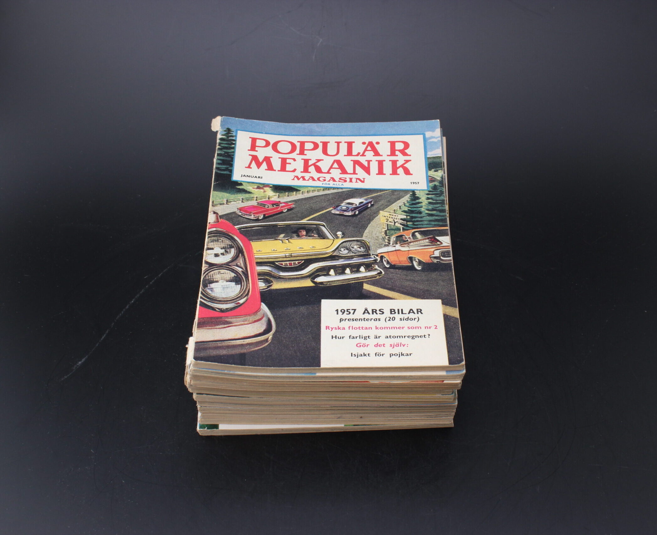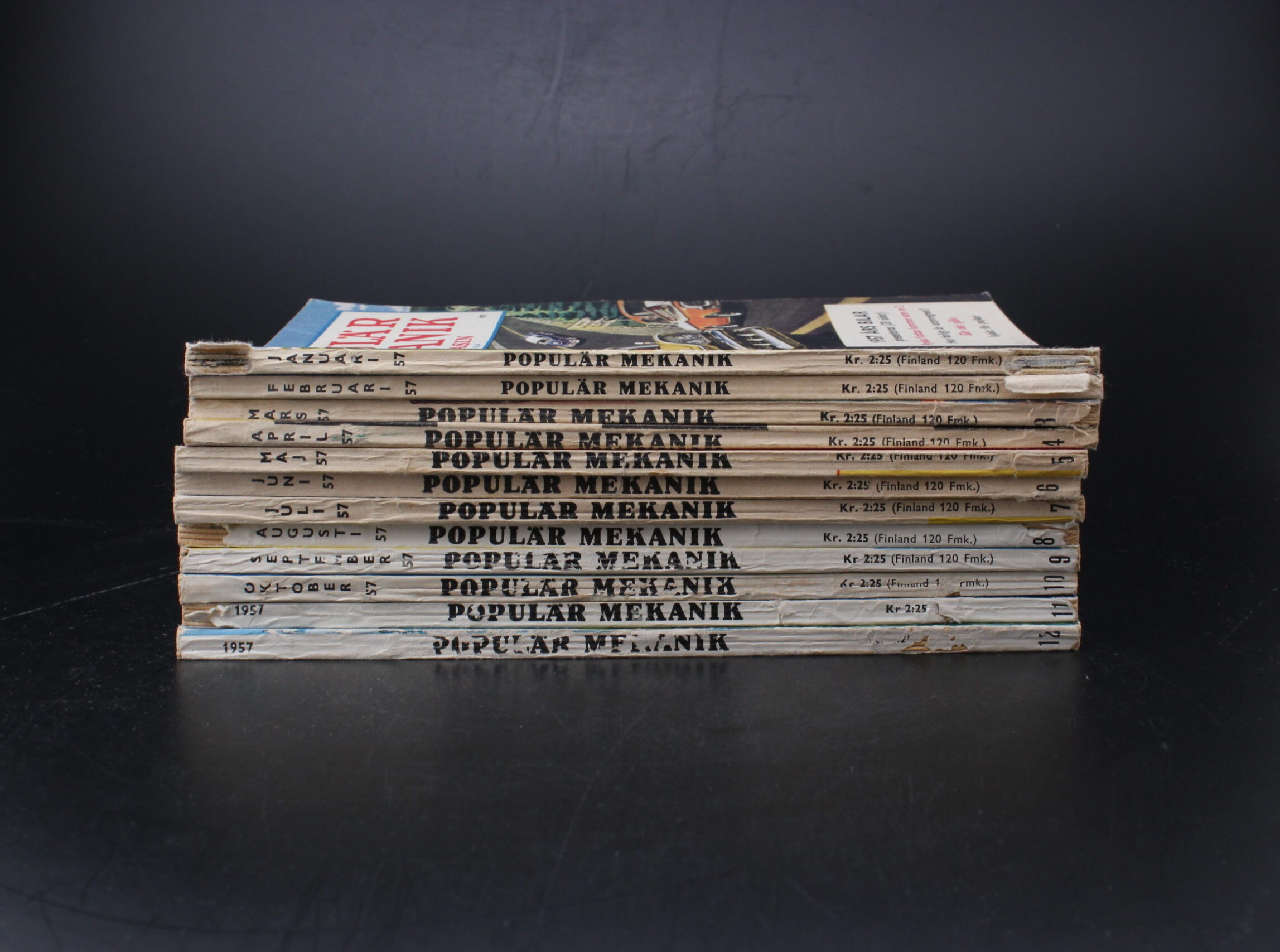 Suositun Populär Mekanik lehden vuosikerta 1957. Settiin kuuluu 12 lehteä.