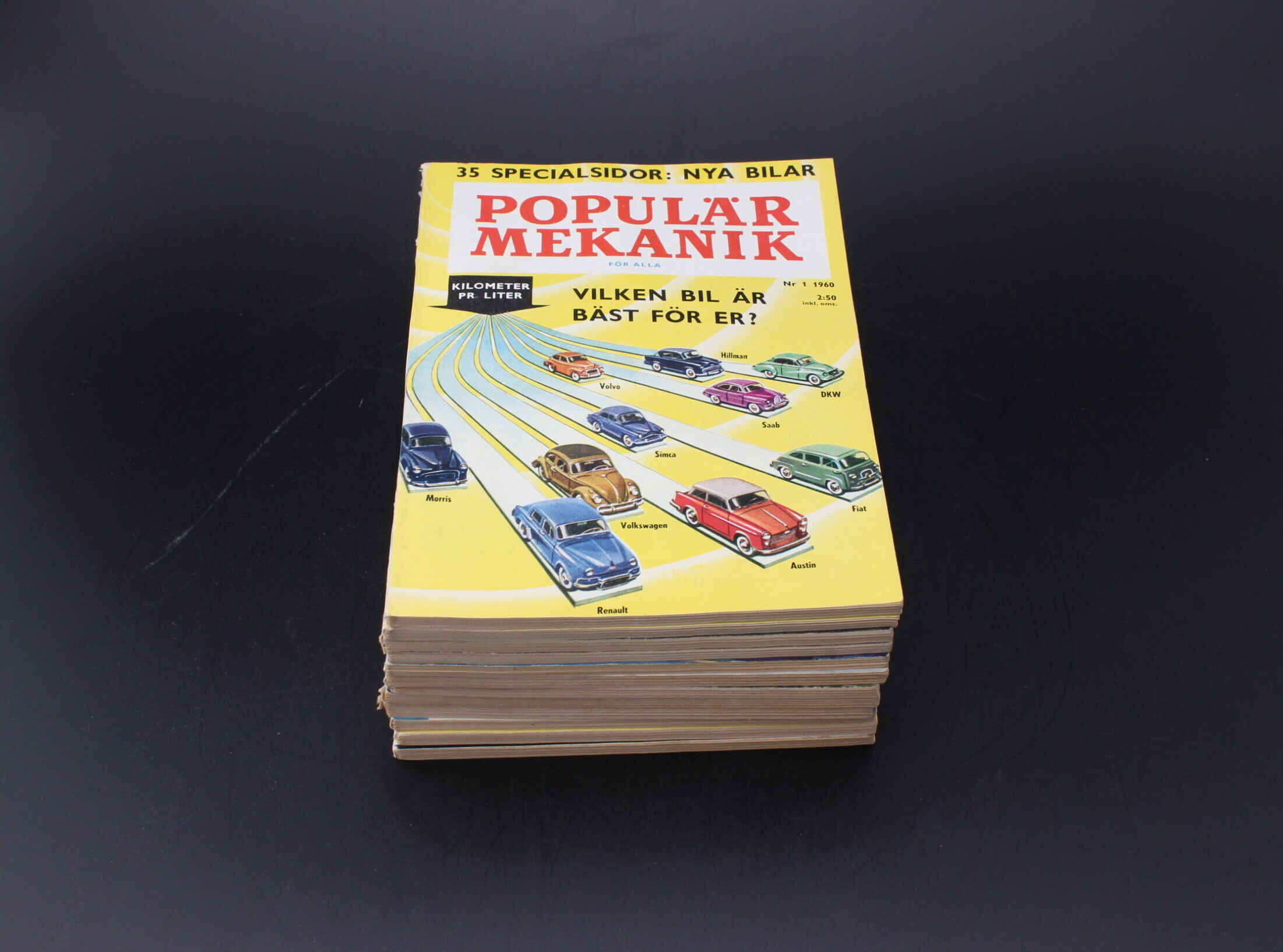 Suositun Populär Mekanik lehden vuosikerta 1960. Settiin kuuluu 12 lehteä.