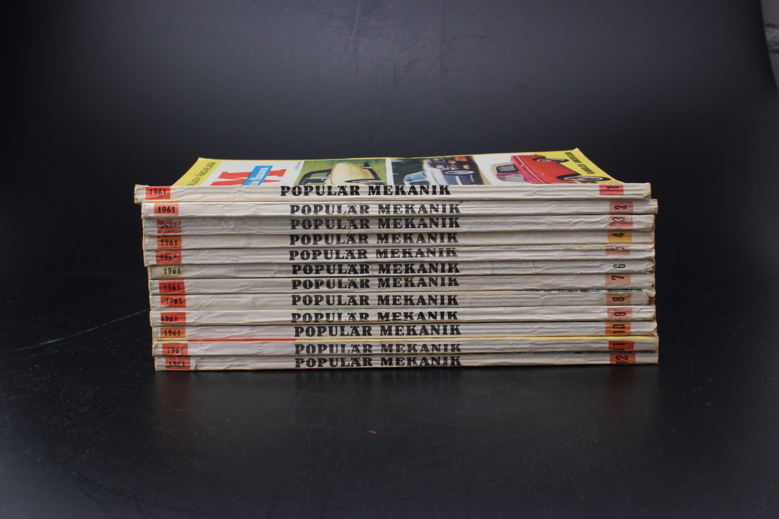 Suositun Populär Mekanik lehden vuosikerta 1961. Settiin kuuluu 12 lehteä.