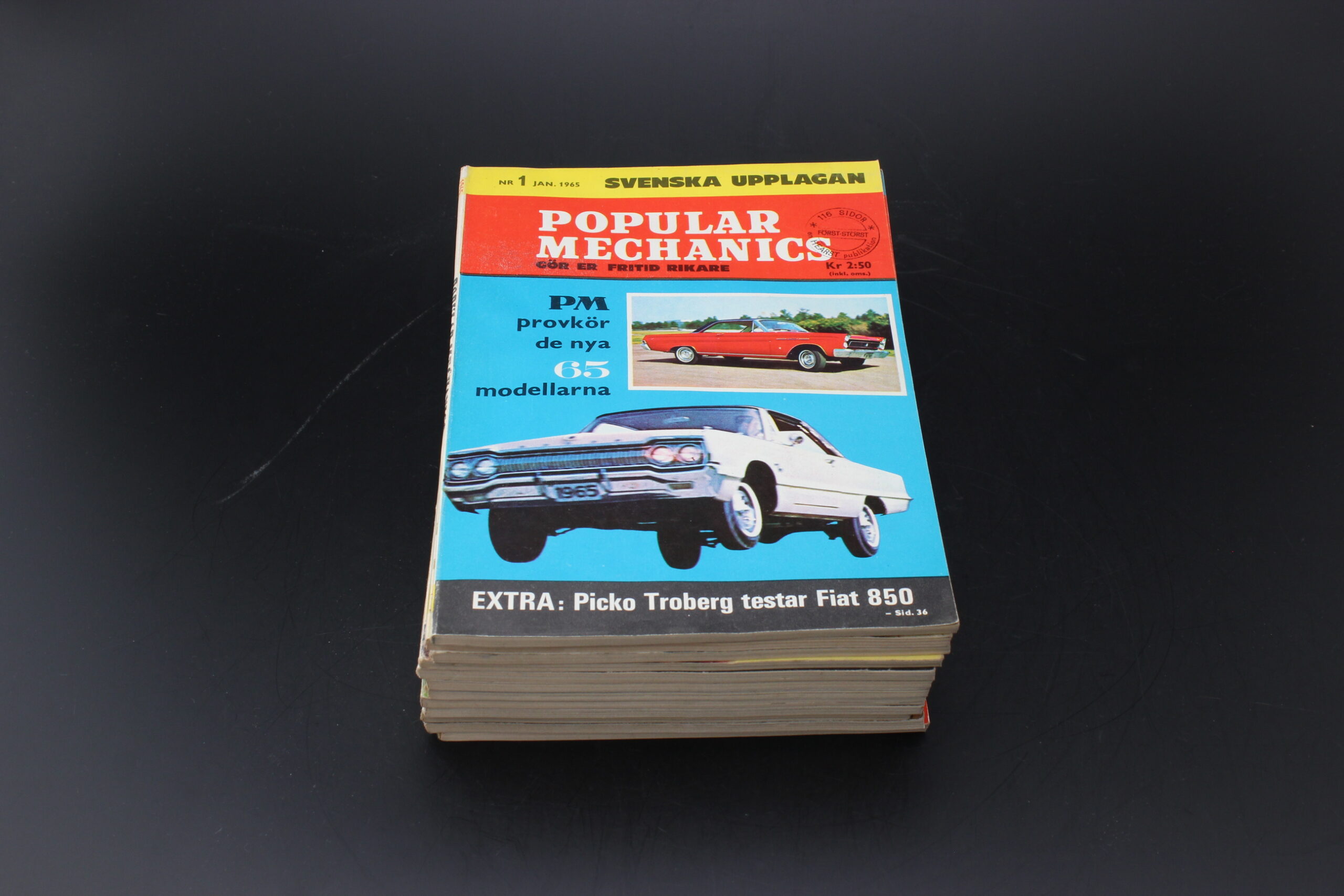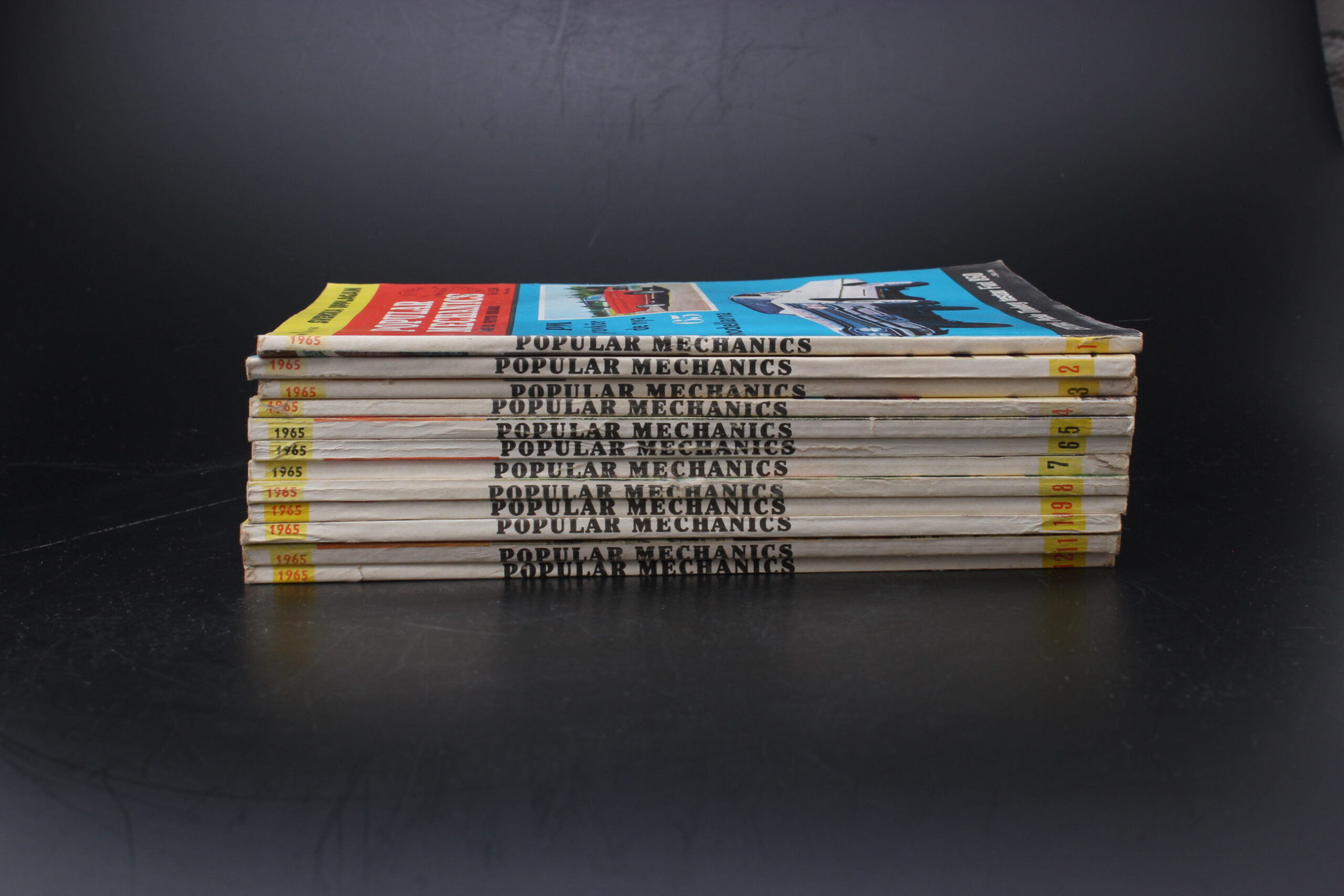 Suositun Populär Mekanik lehden vuosikerta 1965. Settiin kuuluu 12 lehteä.