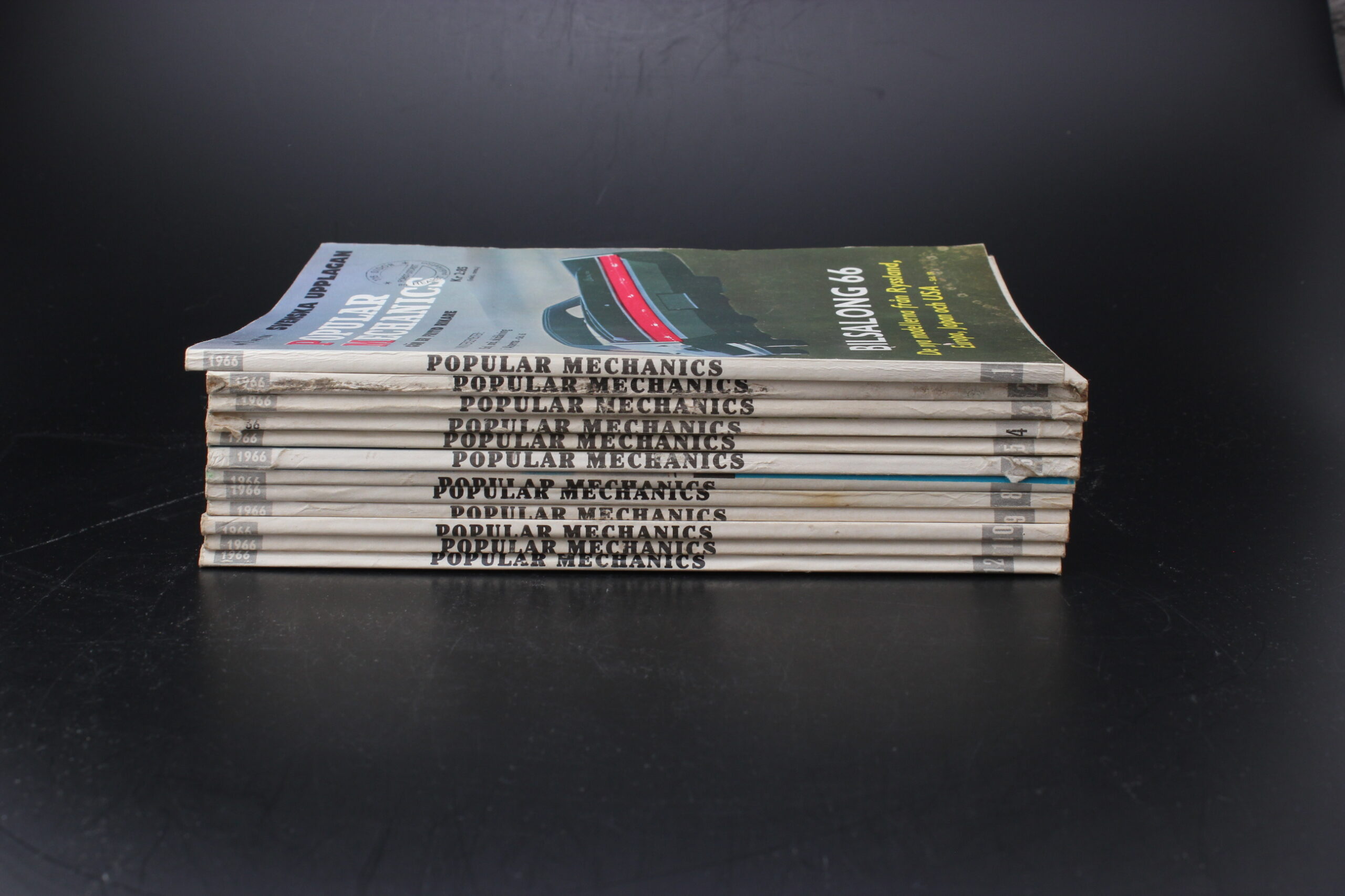 Suositun Populär Mekanik lehden vuosikerta 1966. Settiin kuuluu 12 lehteä.