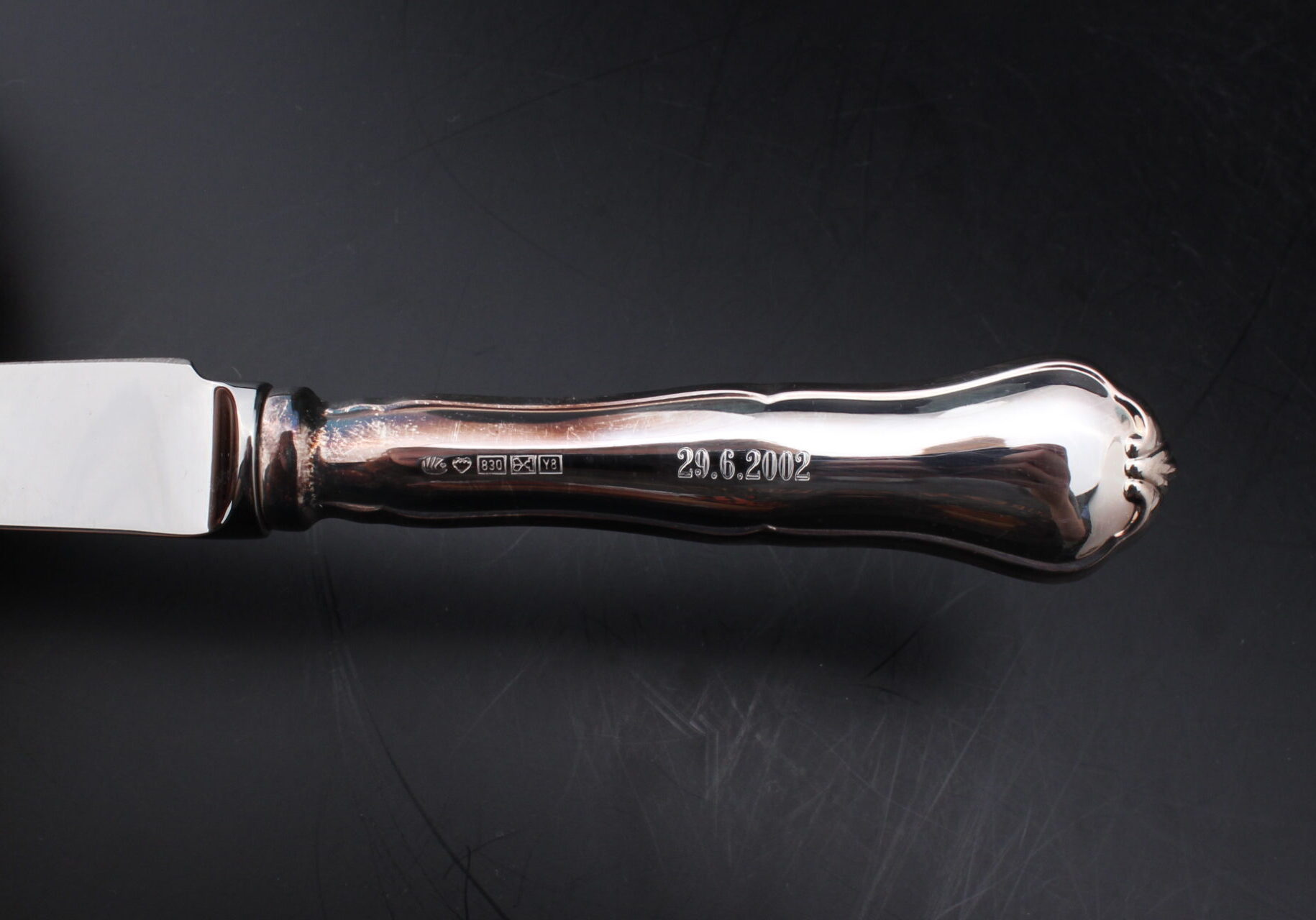 Materiaali: varsi hopeaa (830), terä ruostumatonta terästä