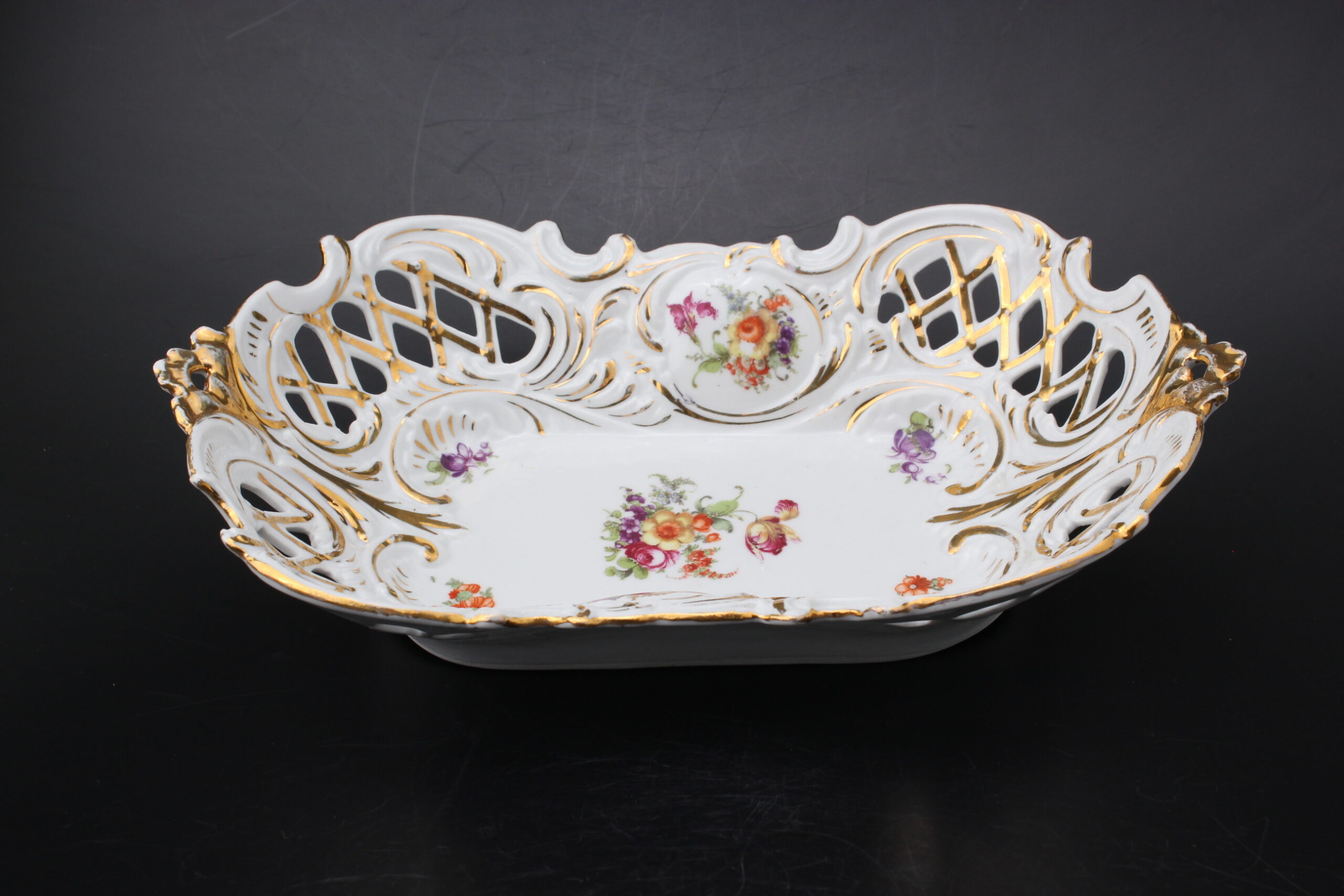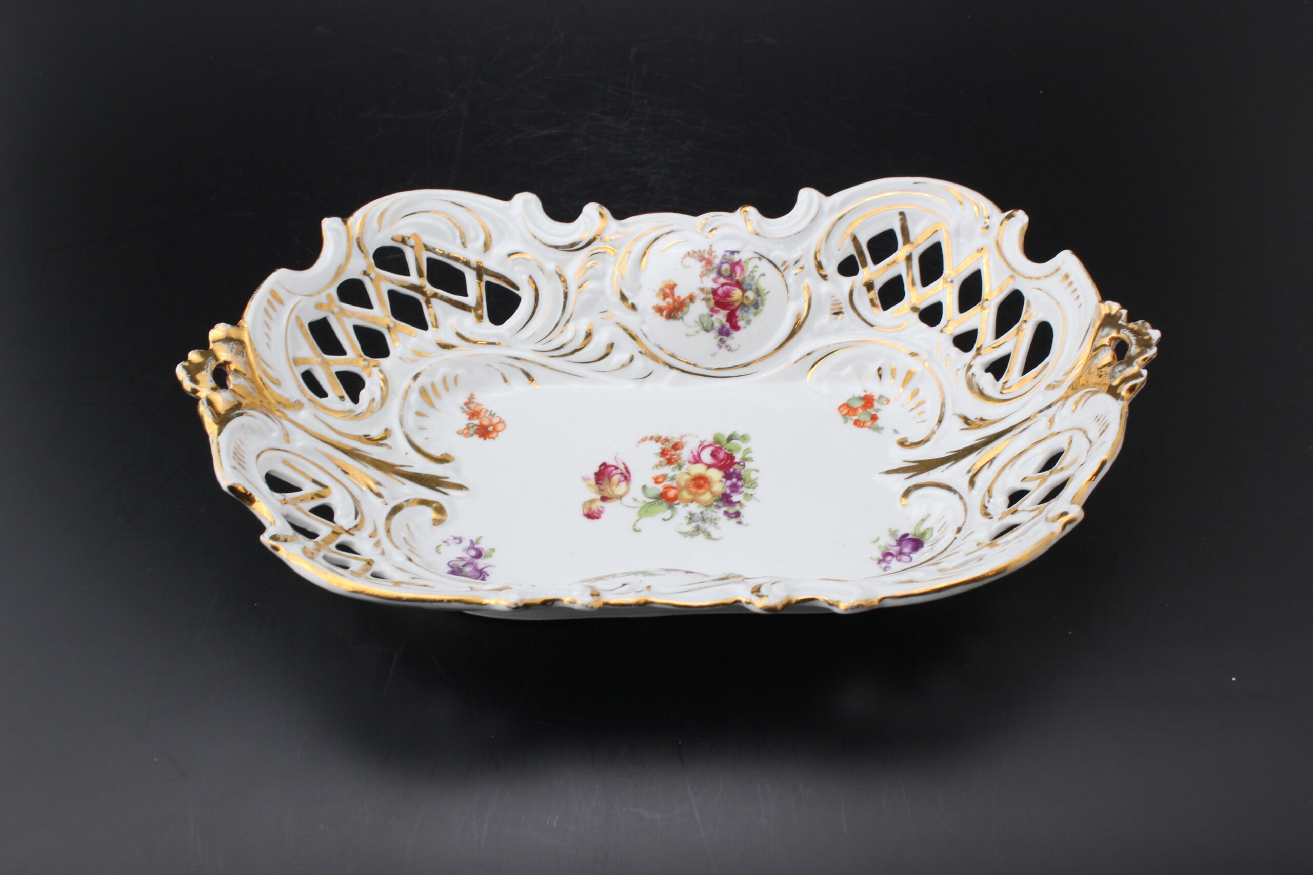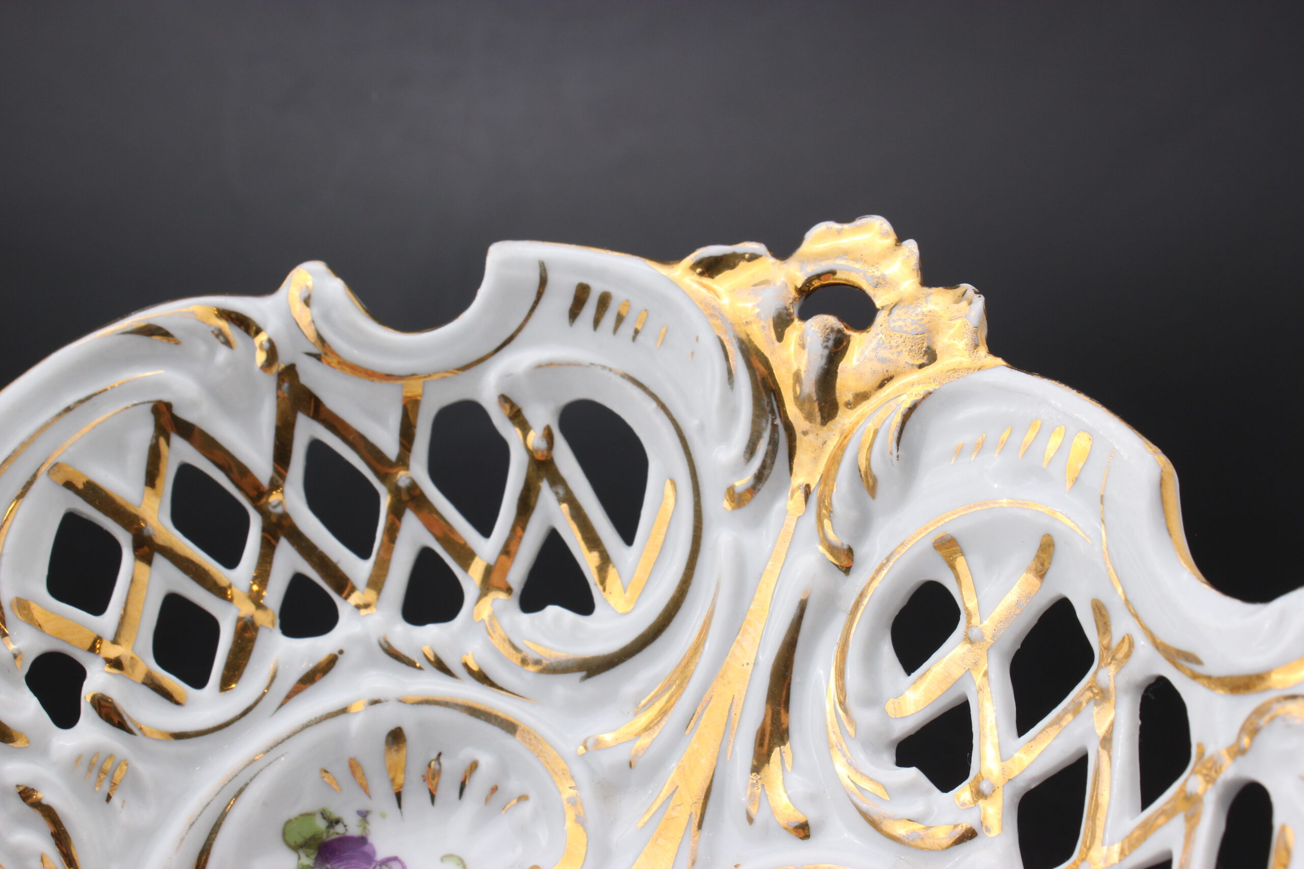 Kunto: ehjä, koristeissa kulumaa, käytön jälkiä