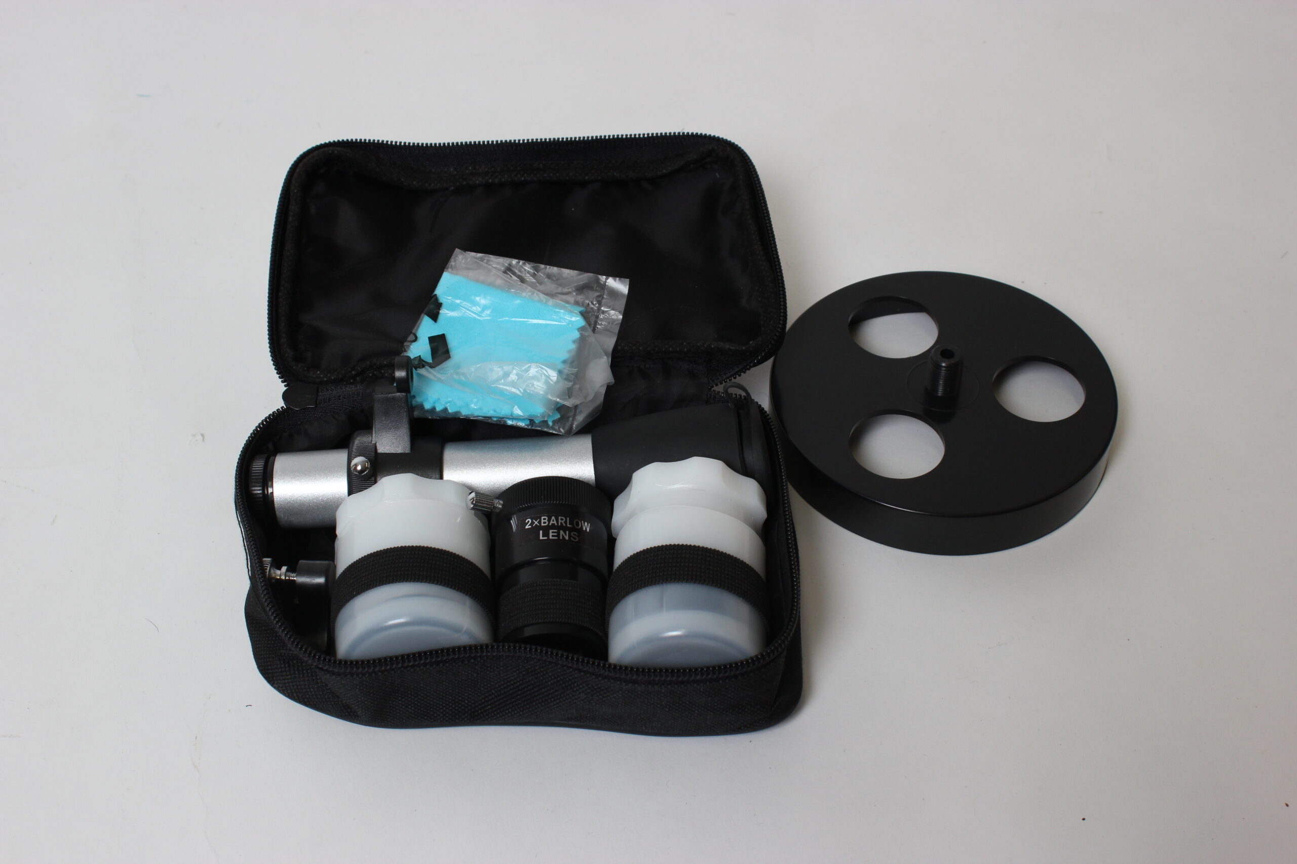 Starfinder kaukoputki ja jalka kantokassissa.