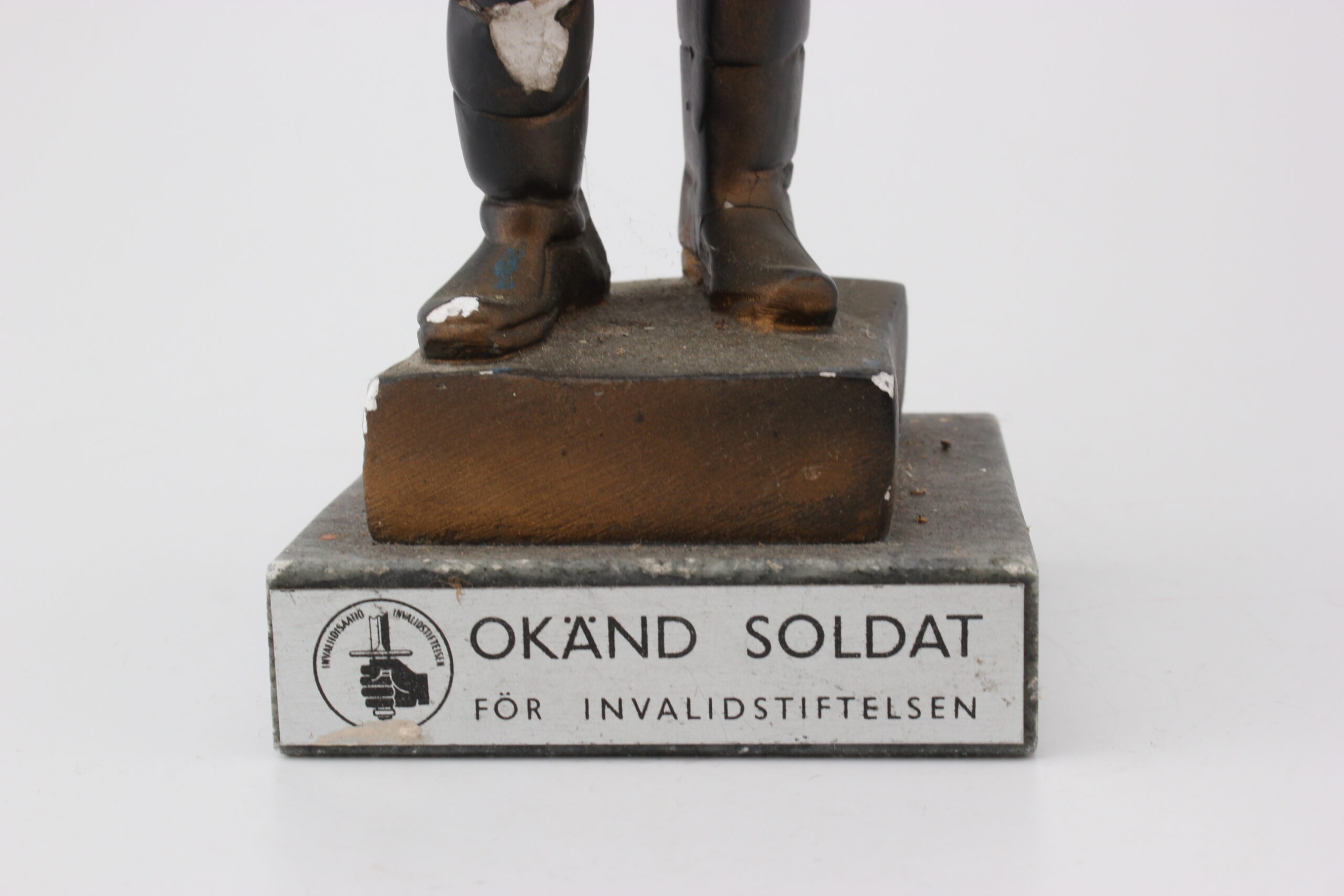 Invalidiliiton tueksi teetetty tuntematon sotilas patsas.