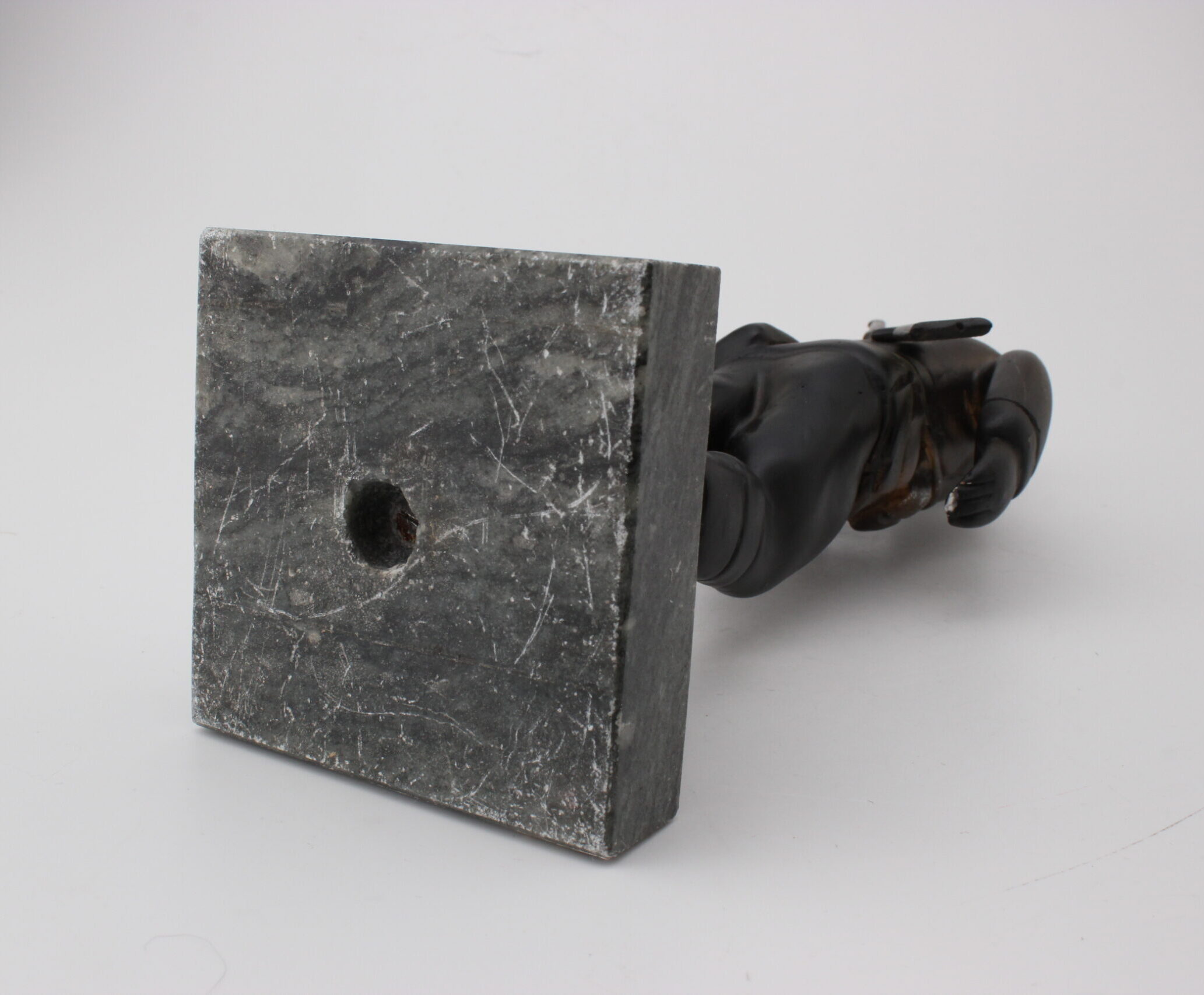 Kunto: käytön jälkiä, kipsistä puuttuu paloja, toinen jalka poikki, likaa, kulumaa