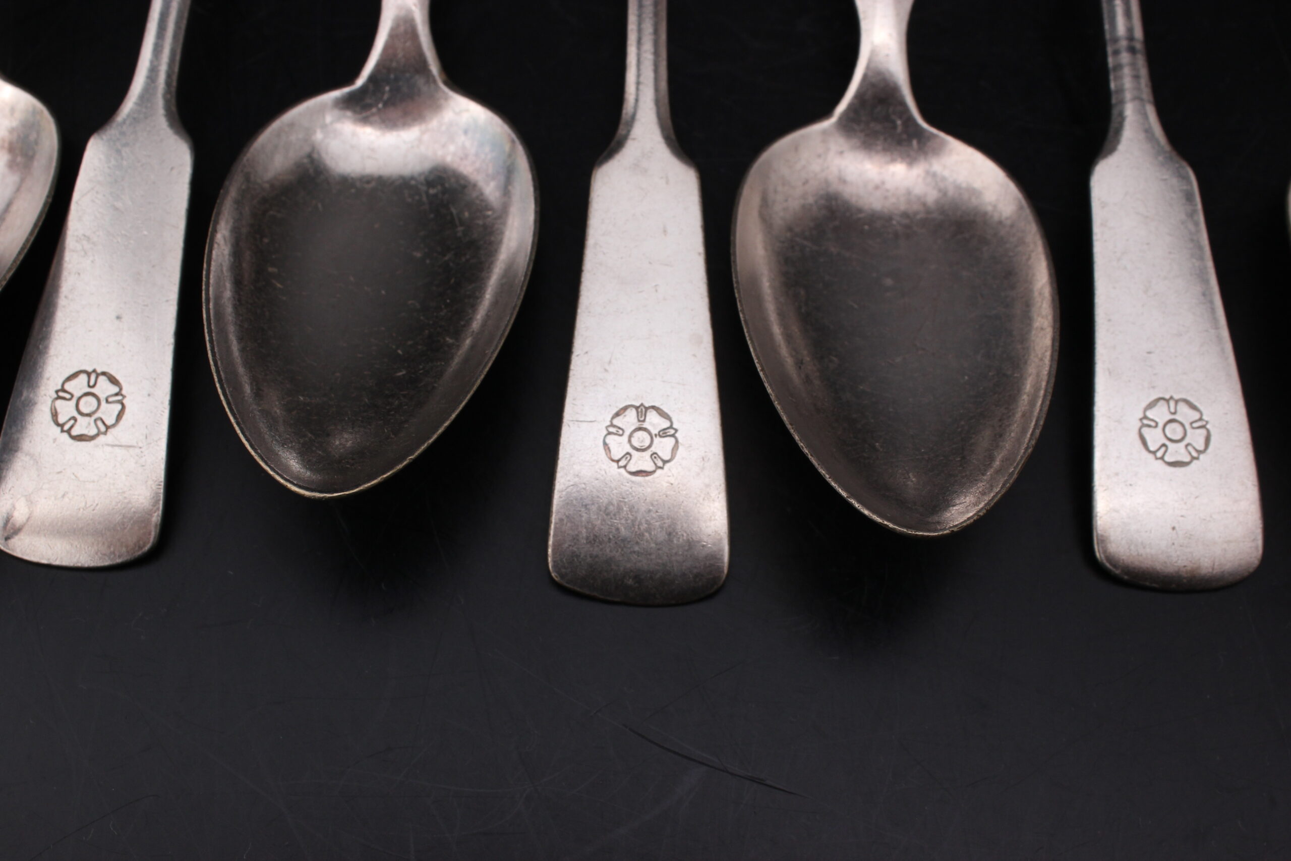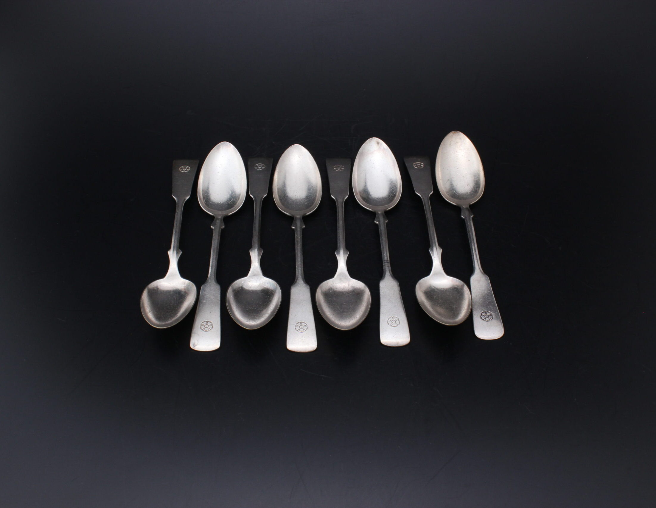 Kunto: ehjät, käytön jälkiä, paljon naarmuja, kulumaa, osa lusikoista vähän vääntynyt