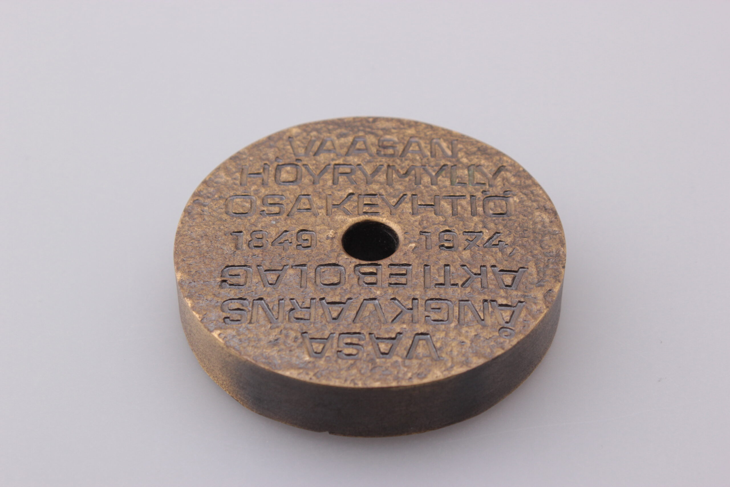 ”Myllynkivi” tekstillä: VAASAN HÖYRYMYLLY OSAKEYHTIÖ 1849-1974 VASA ÅNGKVARNS AKTIEBOLAG”